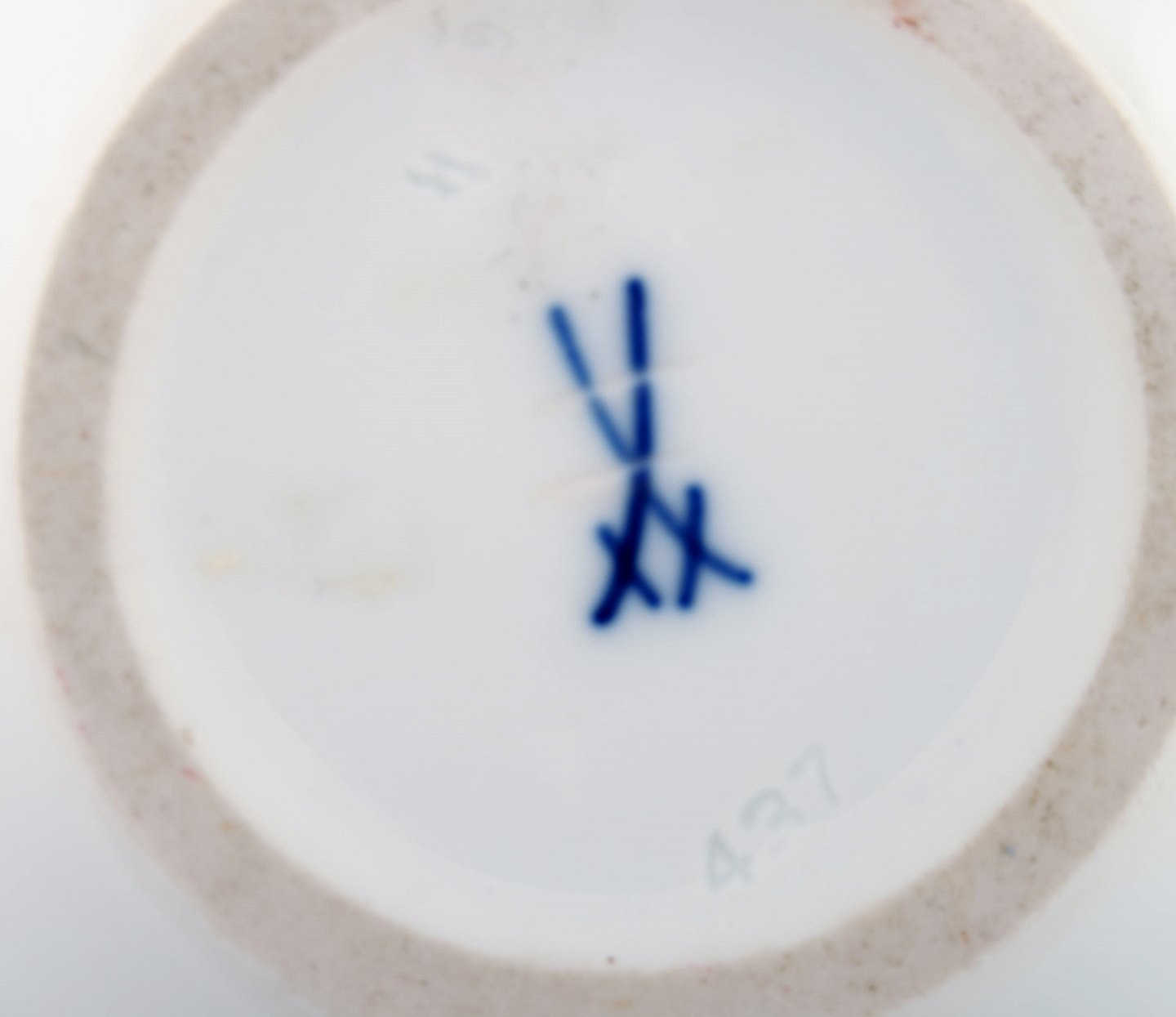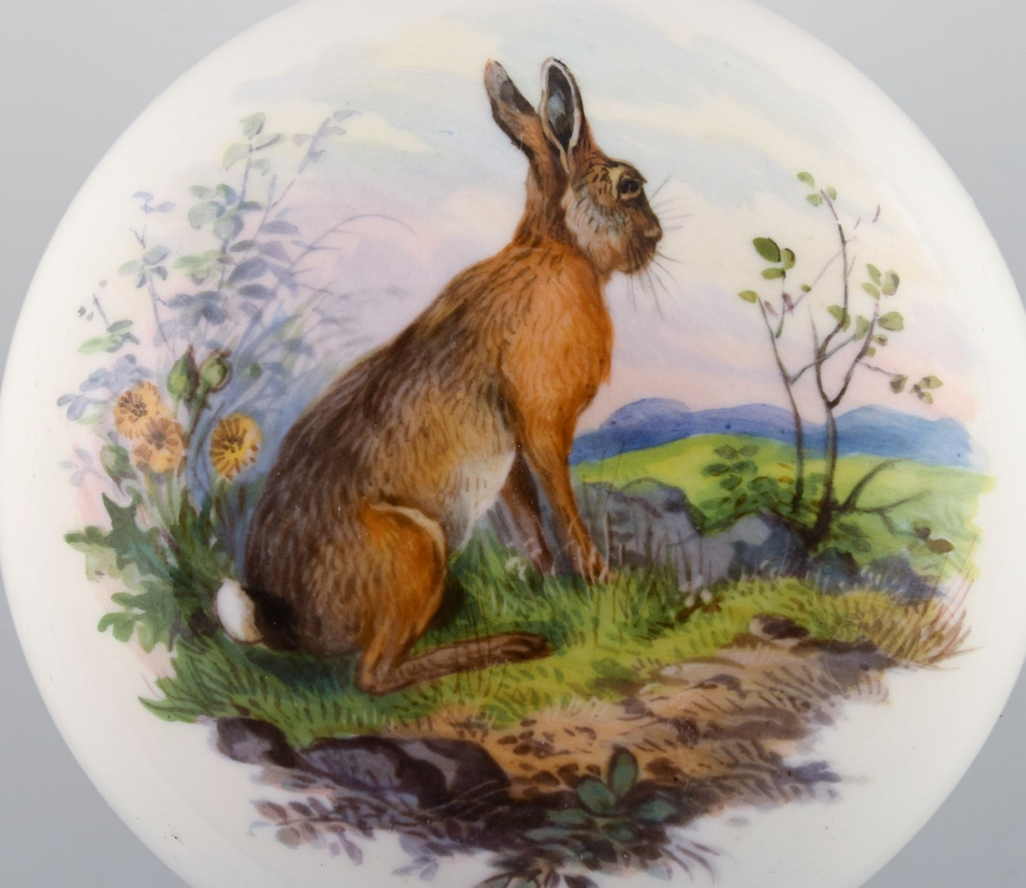 Meissen lågkrukke i håndmalet porcelæn med hare. 1900-tallet. Måler: 9,3 x 6,5 cm. I flot stand. Stemplet. 2. Sortering.