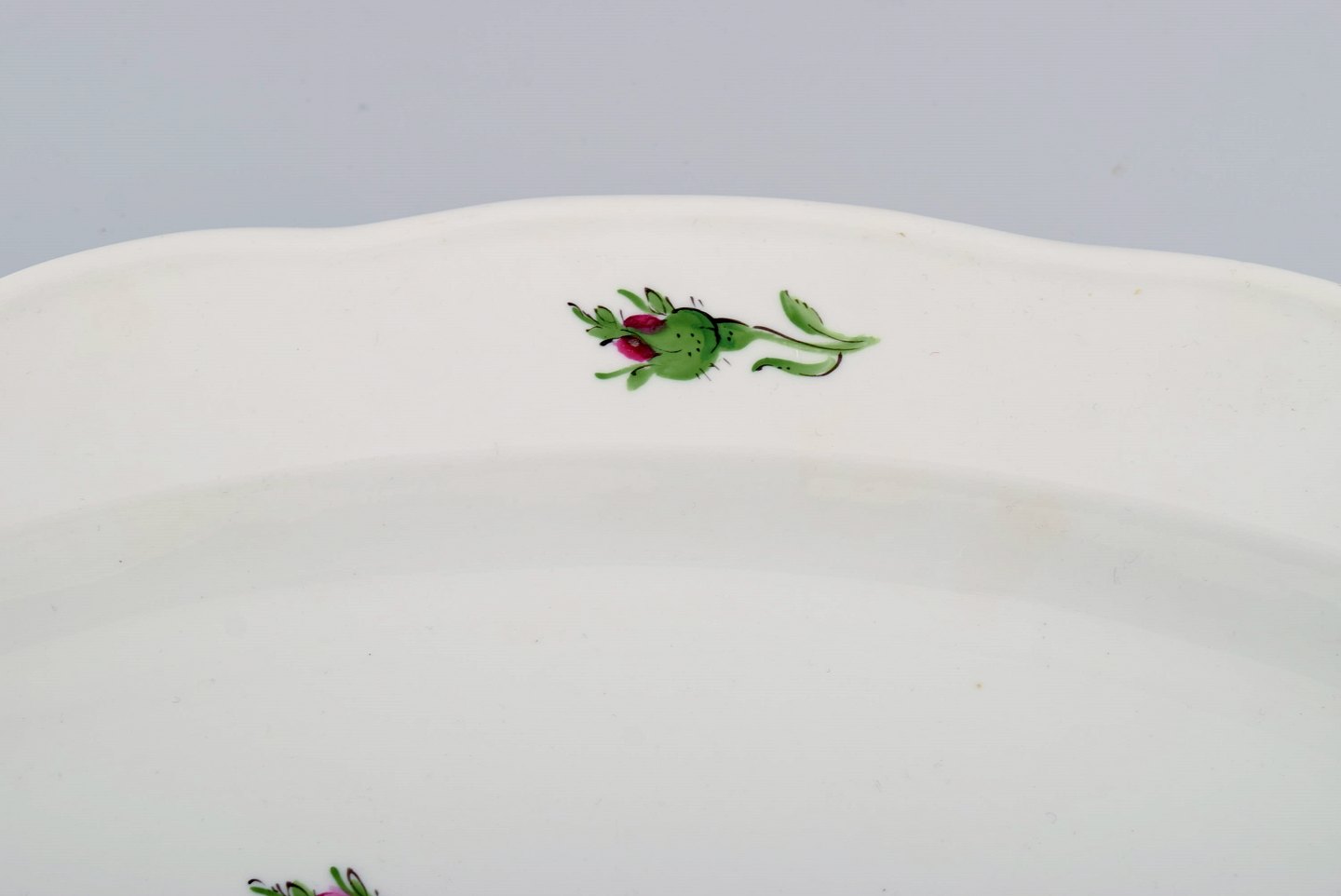 Kolossalt antikt Meissen serveringsfad i håndmalet porcelæn med lyserøde roser. Tidligt 1900-tallet.