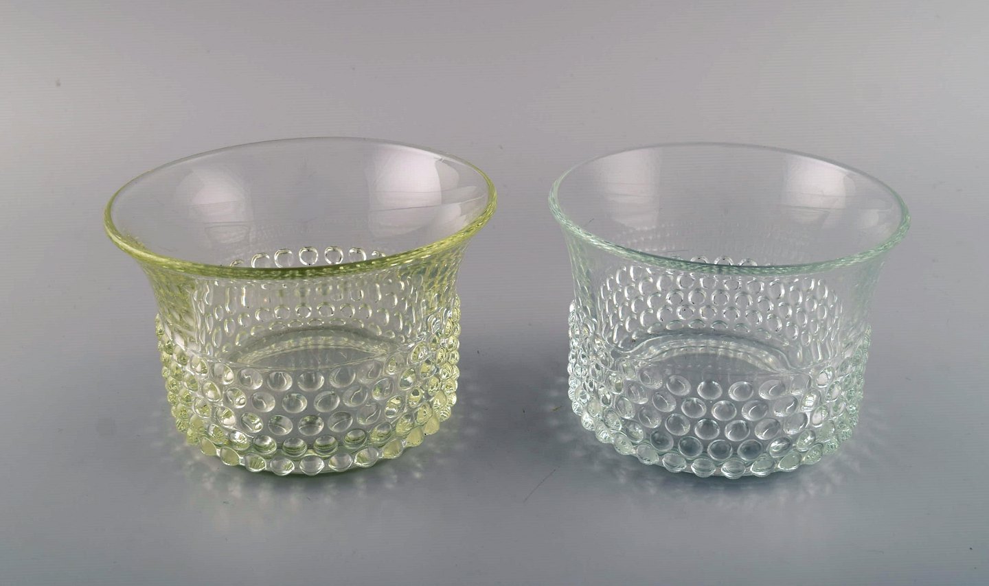 Saara Hopea for Nuutajärvi. To skåle i kunstglas. Knoppet design. 1960/70'erne.