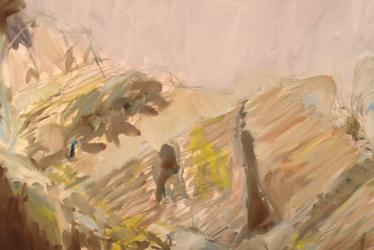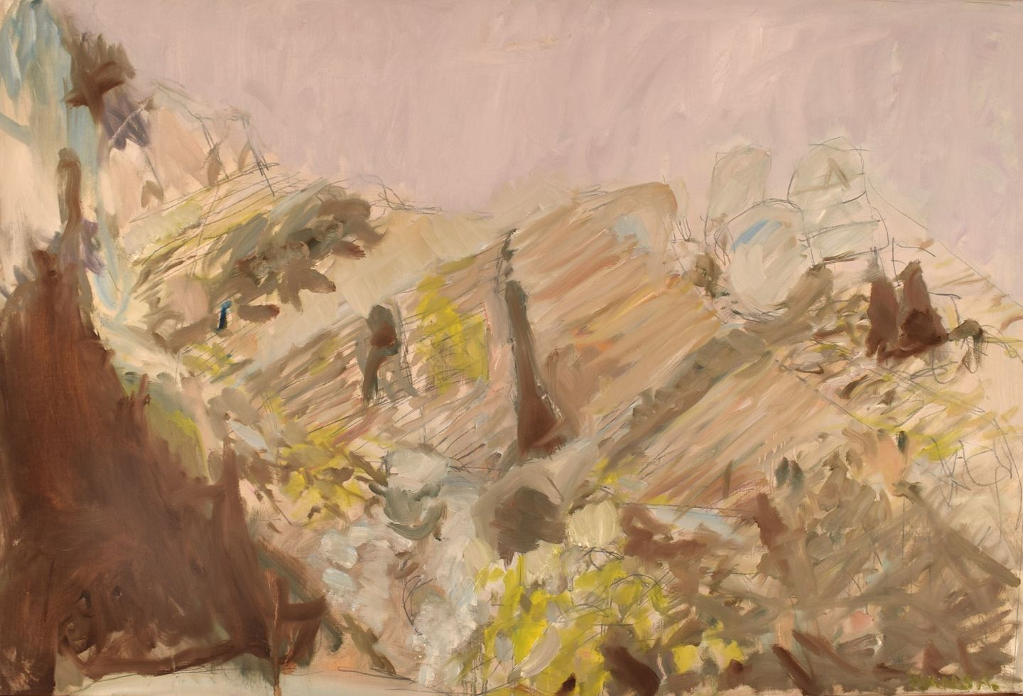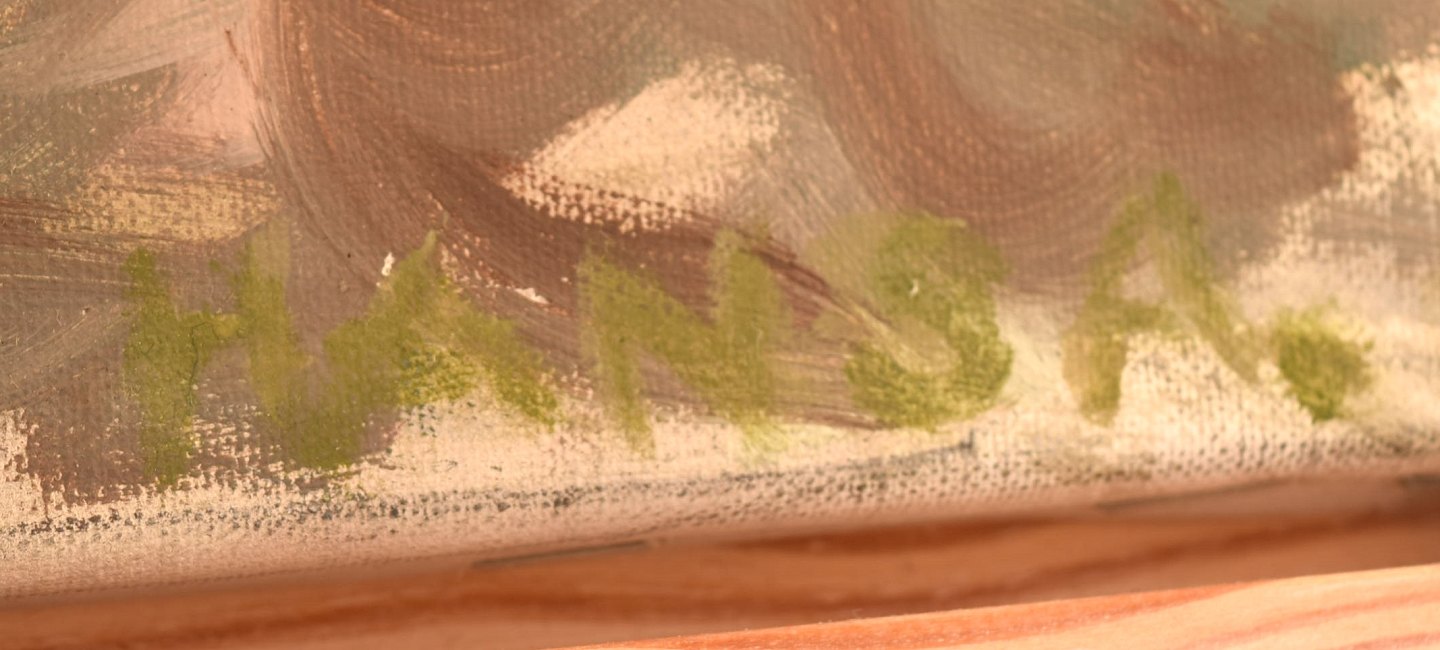 Svensk kunstner. Olie på lærred. Modernistisk landskab. 1980'erne.