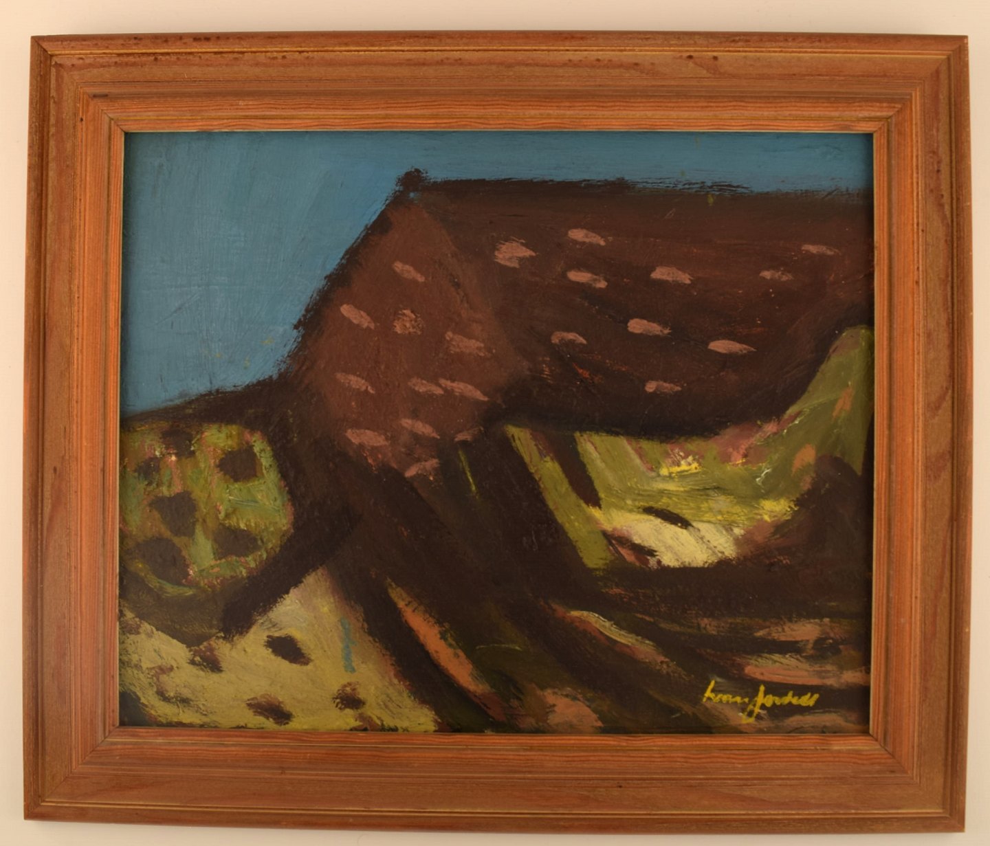Ivan Jordell (1901-1965) Sverige. Olie på plade. Modernistisk landskab. Midt 1900-tallet. Pladen måler: 40 x 32 cm. Rammen måler: 5,5 cm. I flot stand. Signeret.