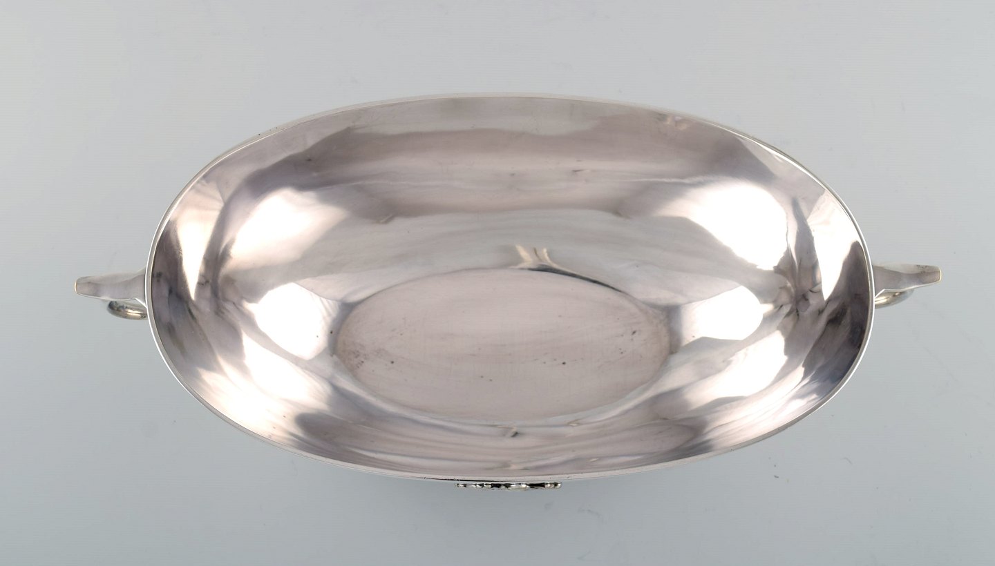 Just Andersen for GAB. Stor art deco jardiniere i nysølv dekoreret med havfruer. 1930'erne.