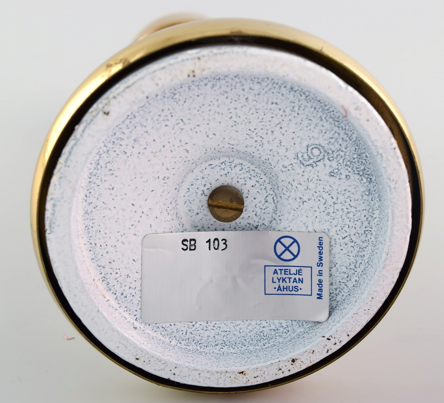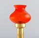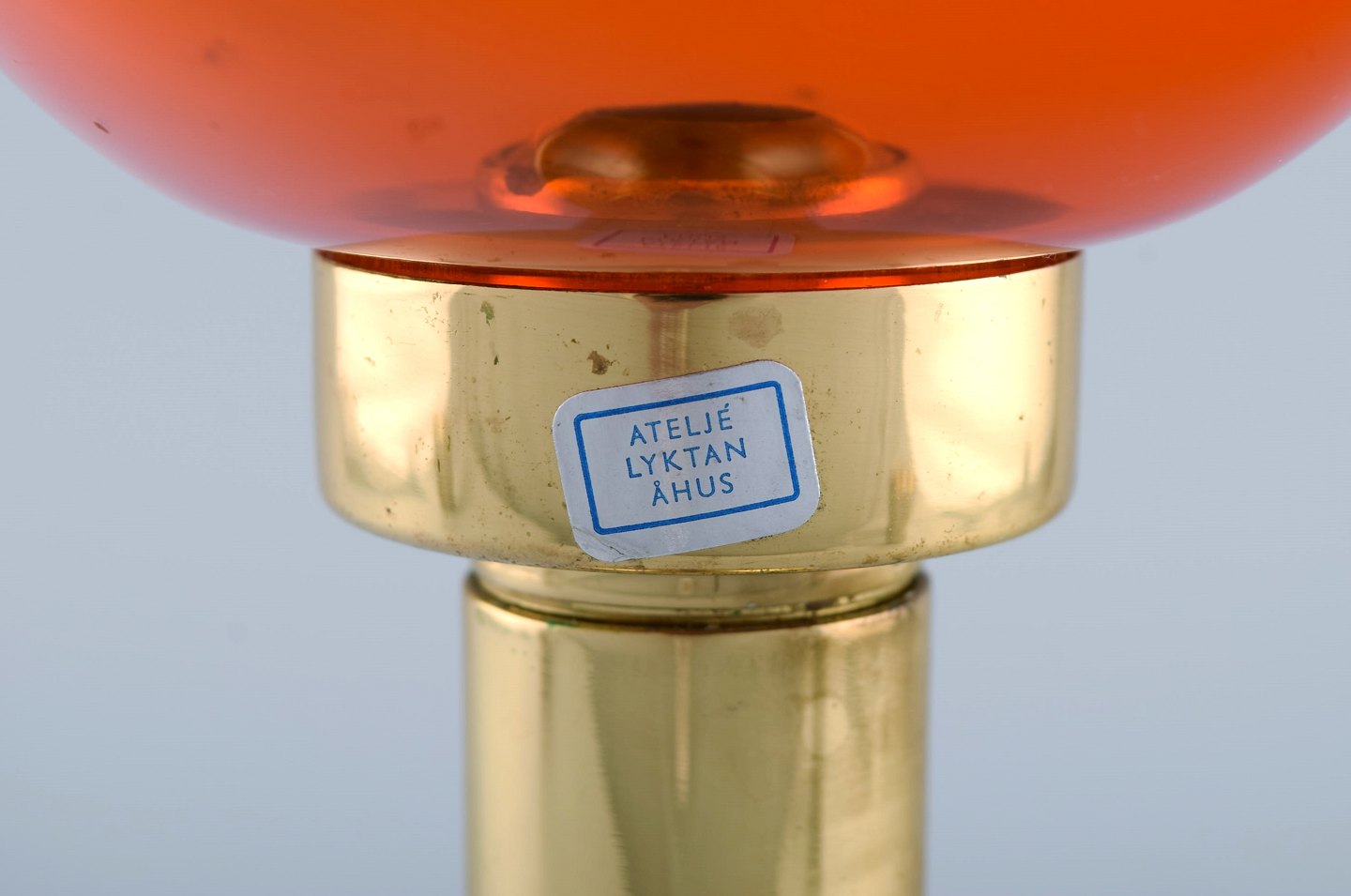 HANS-AGNE JAKOBSSON for A/B MARKARYD. Olielampe i messing og rødt kunstglas. 1960/70'erne. Måler: 26 x 10 cm. I flot stand.
