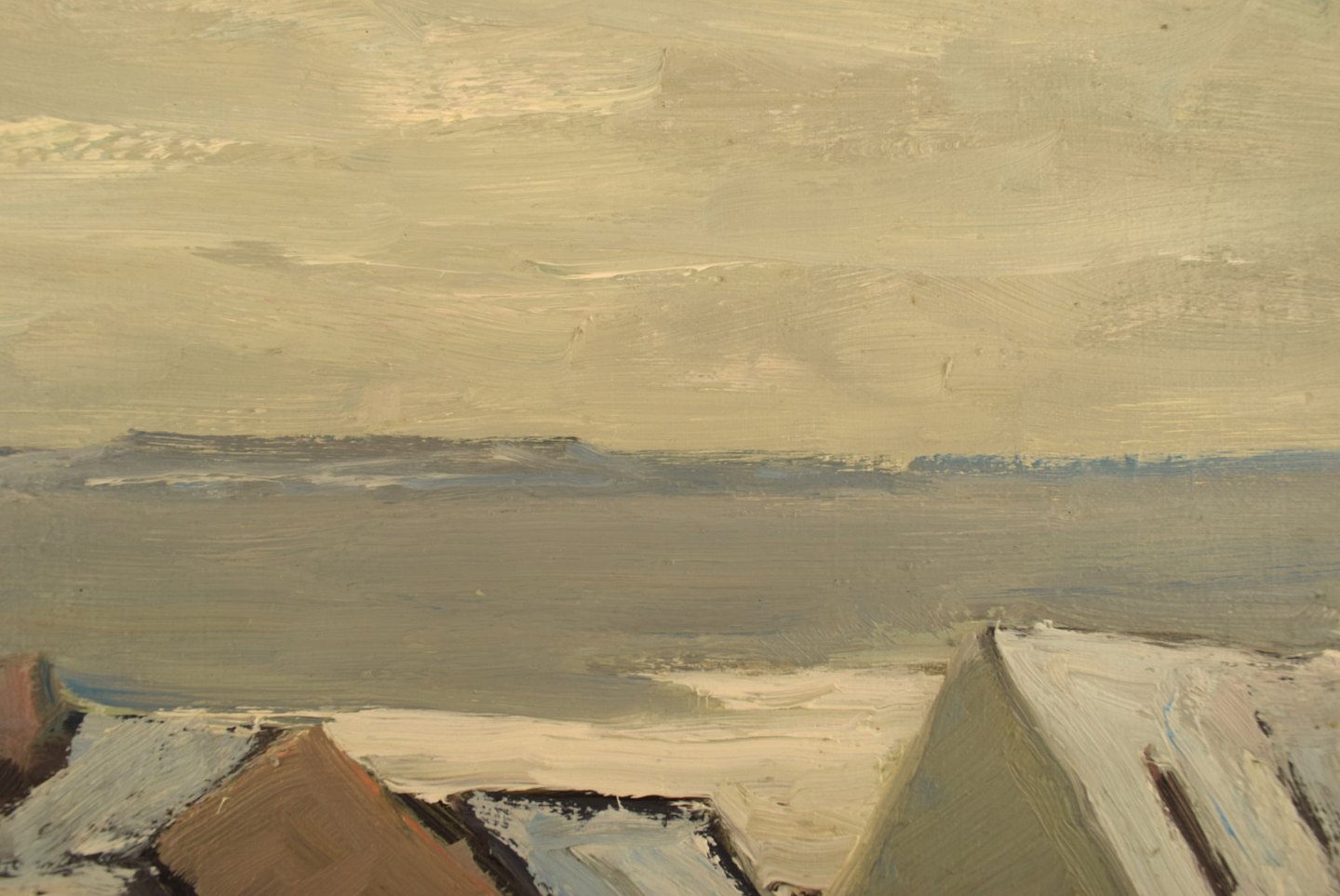 Carl Berndtsson (1902-1982), Sverige. Olie på lærred. Modernistisk landskab. 1960'erne. Lærredet måler: 52,5 x 28,5 cm. Rammen måler: 9 cm. I flot stand. Signeret.