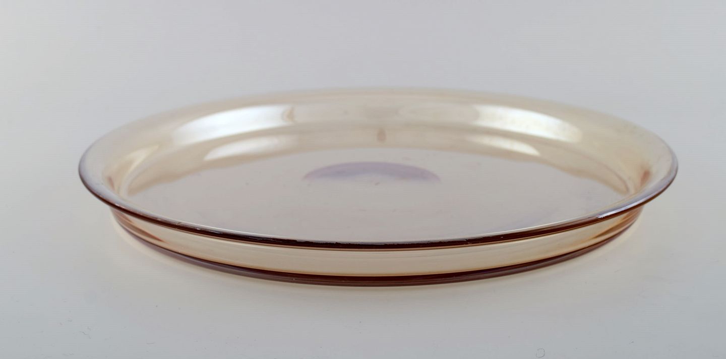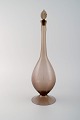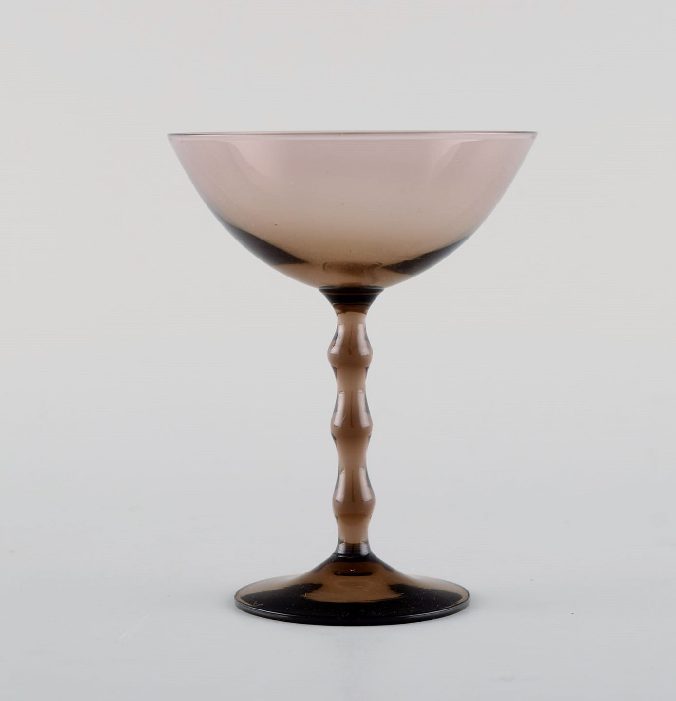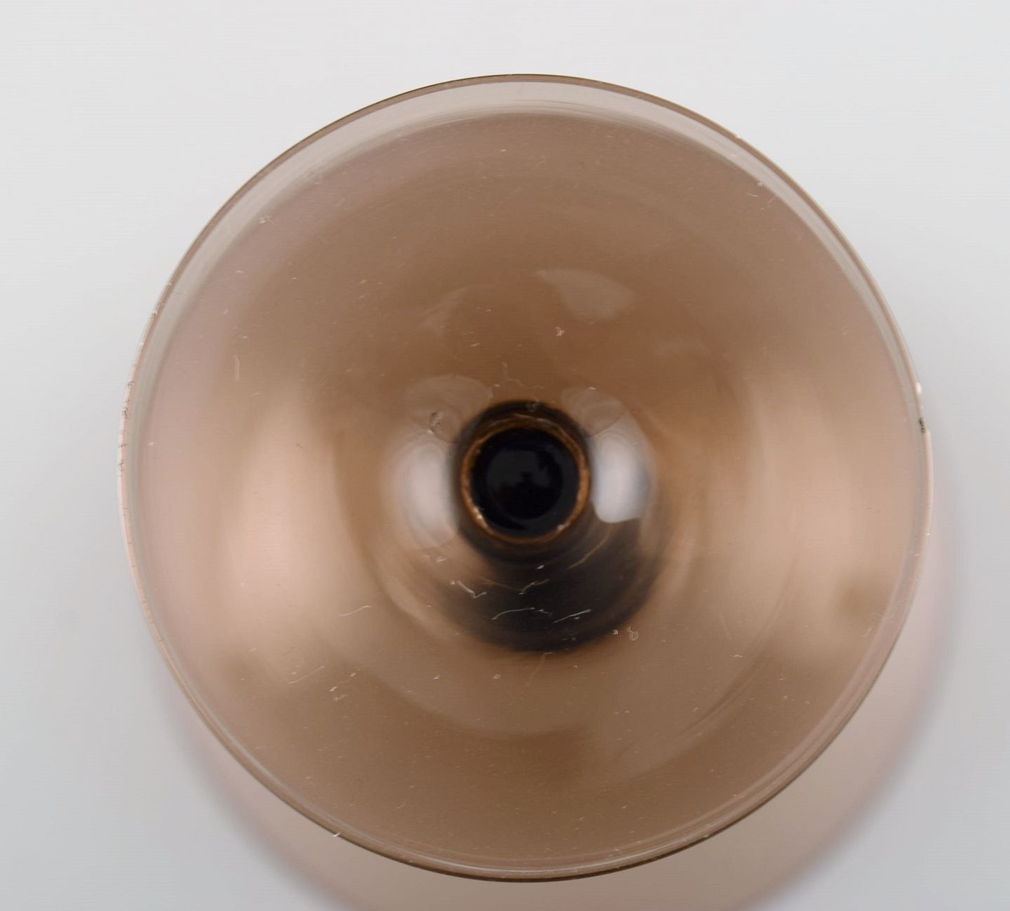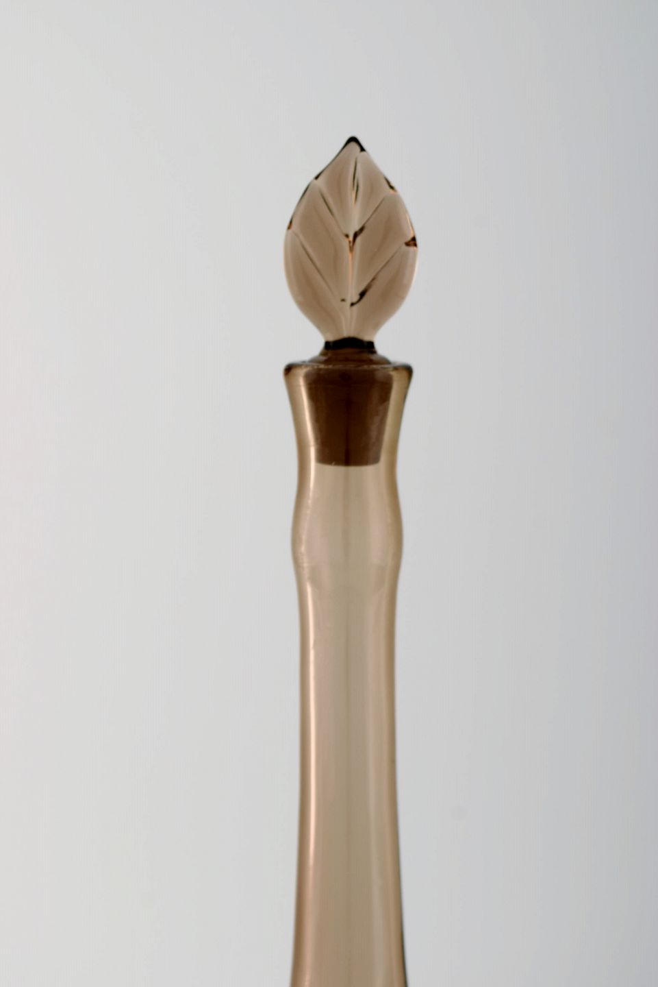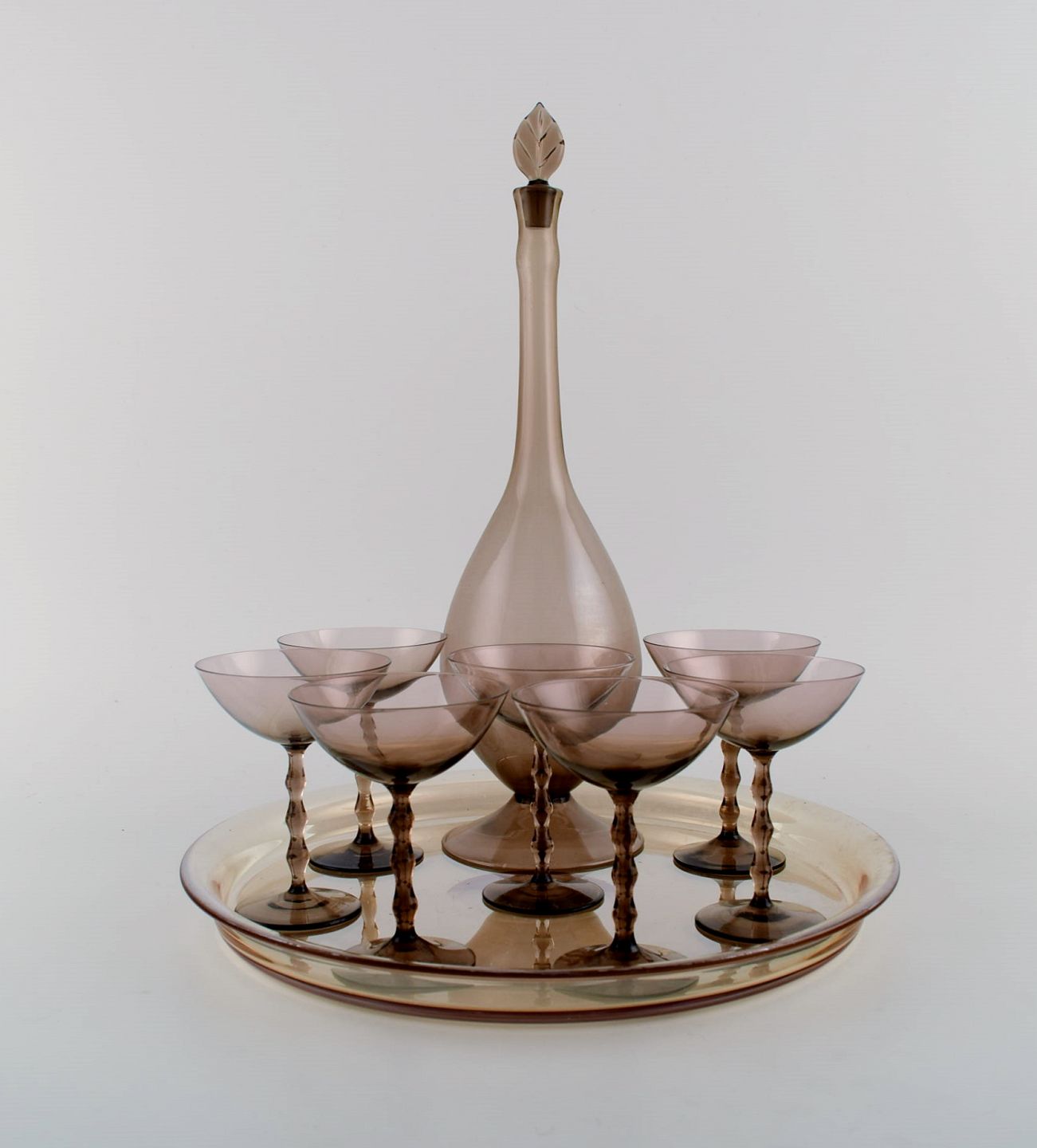 Simon Gate for Orrefors. Art deco likørsæt i røgfarvet mundblæst kunstglas. Syv glas, karaffel og bakke. 1930'erne.