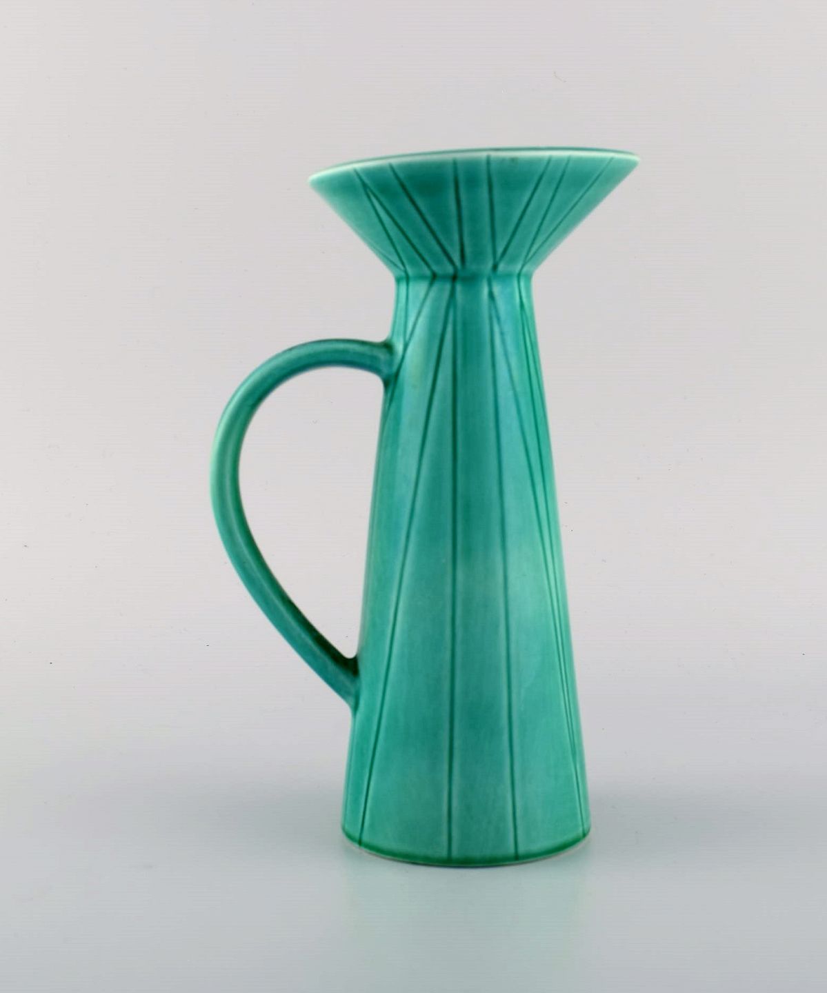 Rörstrand, Sverige. Kande i glaseret keramik. Smuk glasur og indridset dekoration. 1960'erne. Måler: 20 x 13 cm. I flot stand. 1. sortering. Stemplet.