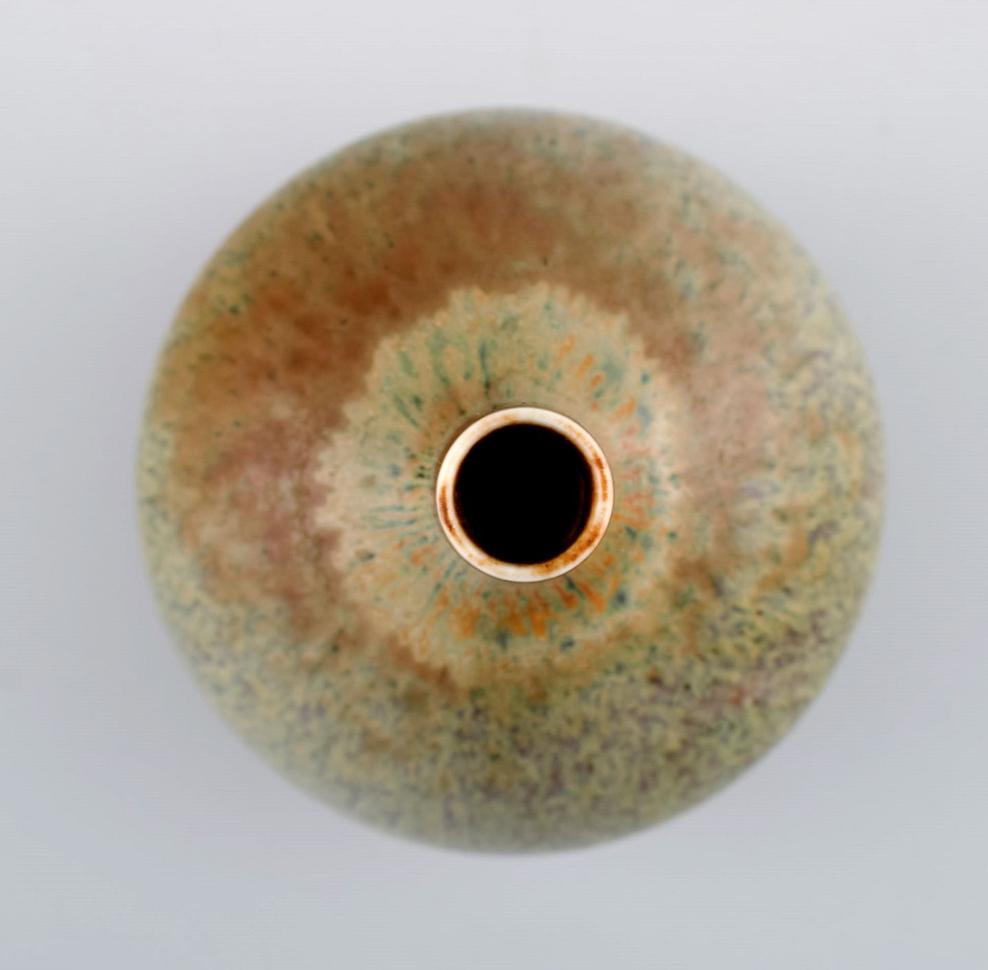 Carl Harry Stålhane for Rörstrand. Vase i glaseret keramik. Smuk spættet glasur i blågrønne og brune nuancer. Midt 1900-tallet.