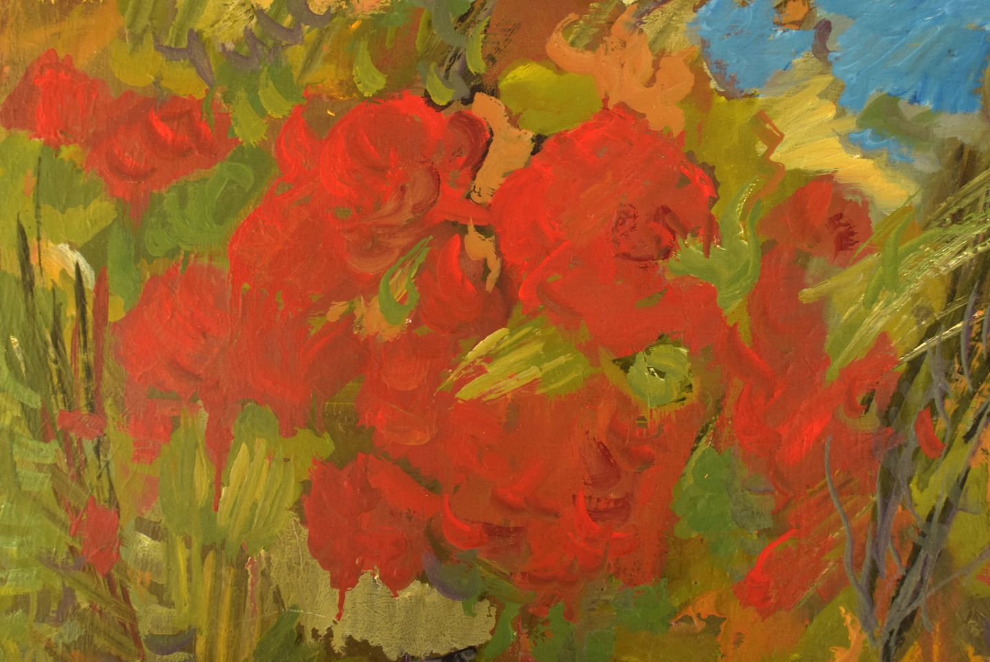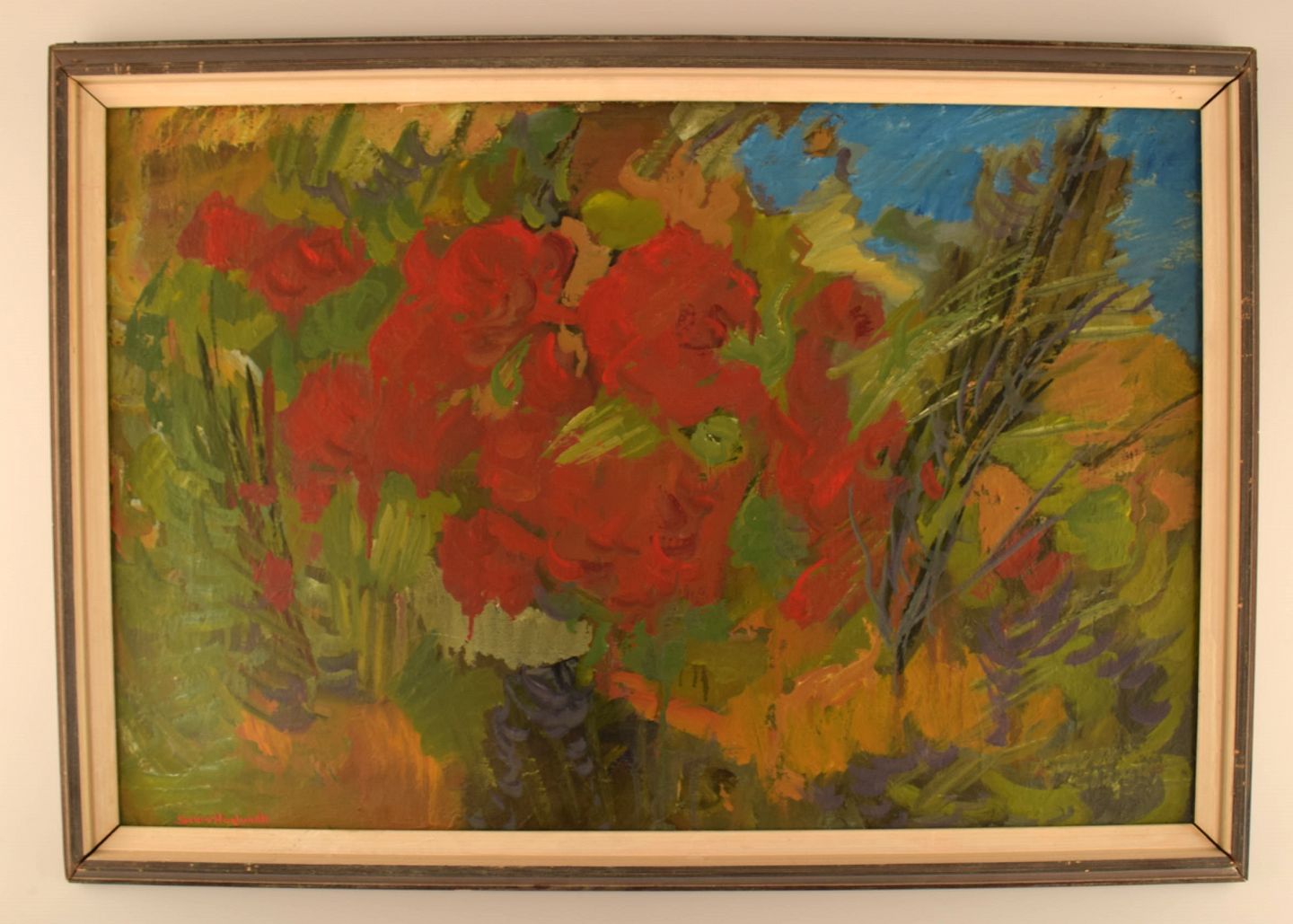 Sture Haglundh (1908-1978), Sverige. Mixed media på plade. Vilde blomster. 1960'erne. Pladen måler: 62 x 41 cm. Rammen måler: 4 cm. I flot stand. Signeret.