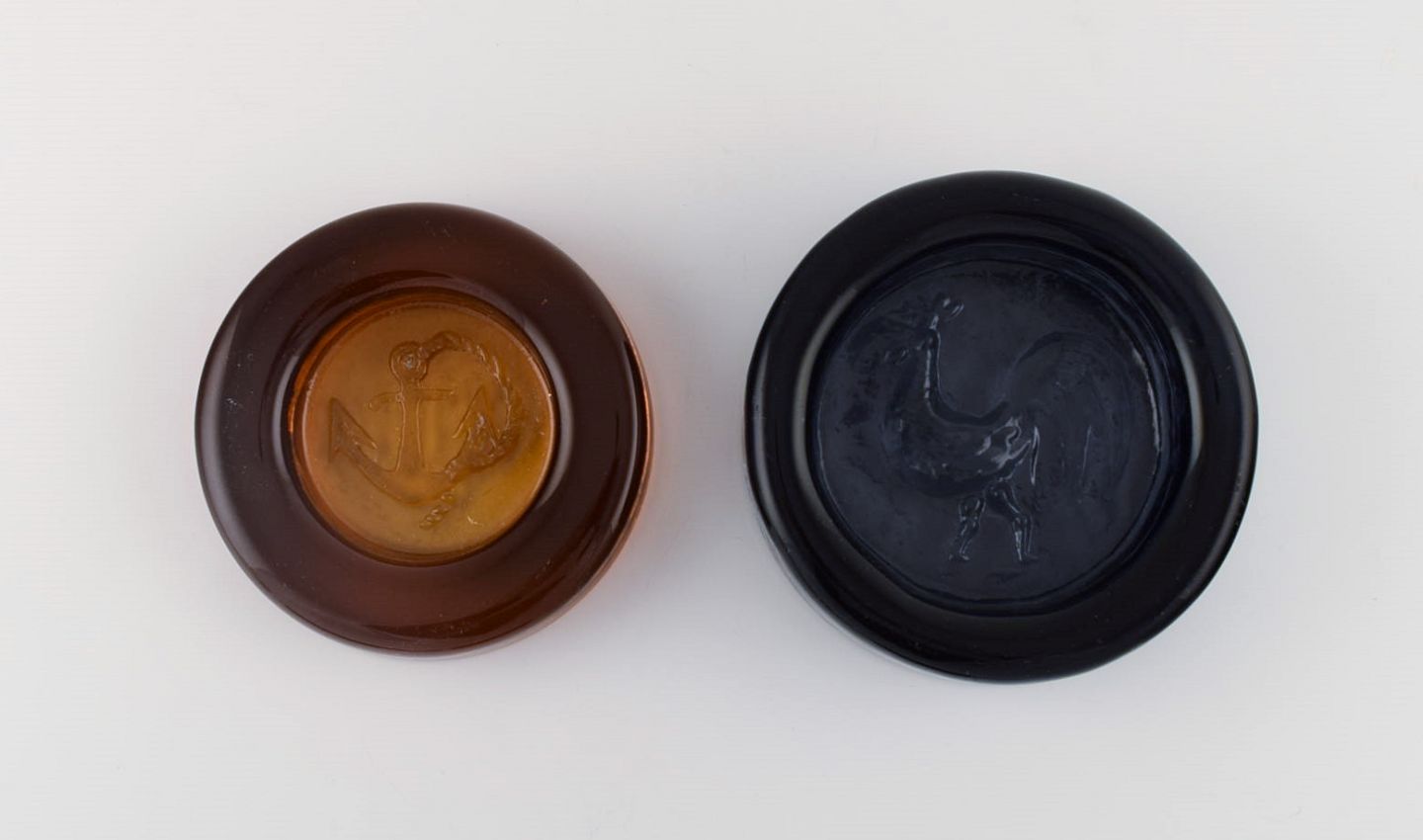 Erik Höglund (1932-1998) for Kosta Boda. Five low bowls in amber colored mouth-blown art glass. Swedish design 1960 / 70s. Largest measures: 13.5 x 4 cm. In excellent condition.