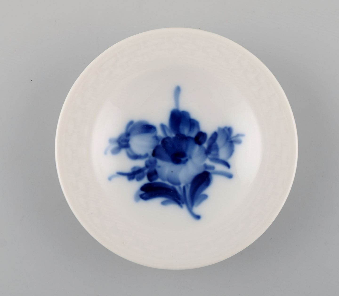 Tre Royal Copenhagen Blå blomst flettet kuvertsmør. Nummer 10/8180. Diameter: 8 cm. 1. Sortering. I flot stand. Stemplet.