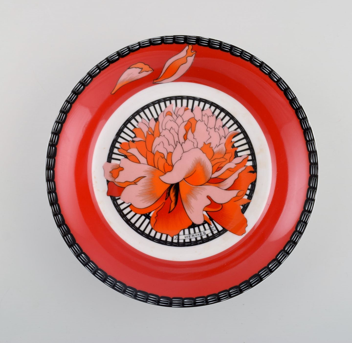 Seks Hermès skåle i porcelæn dekoreret med røde blomster. 1980erne. Måler: 19,5 x 3,8 cm. I flot stand. Stemplet.