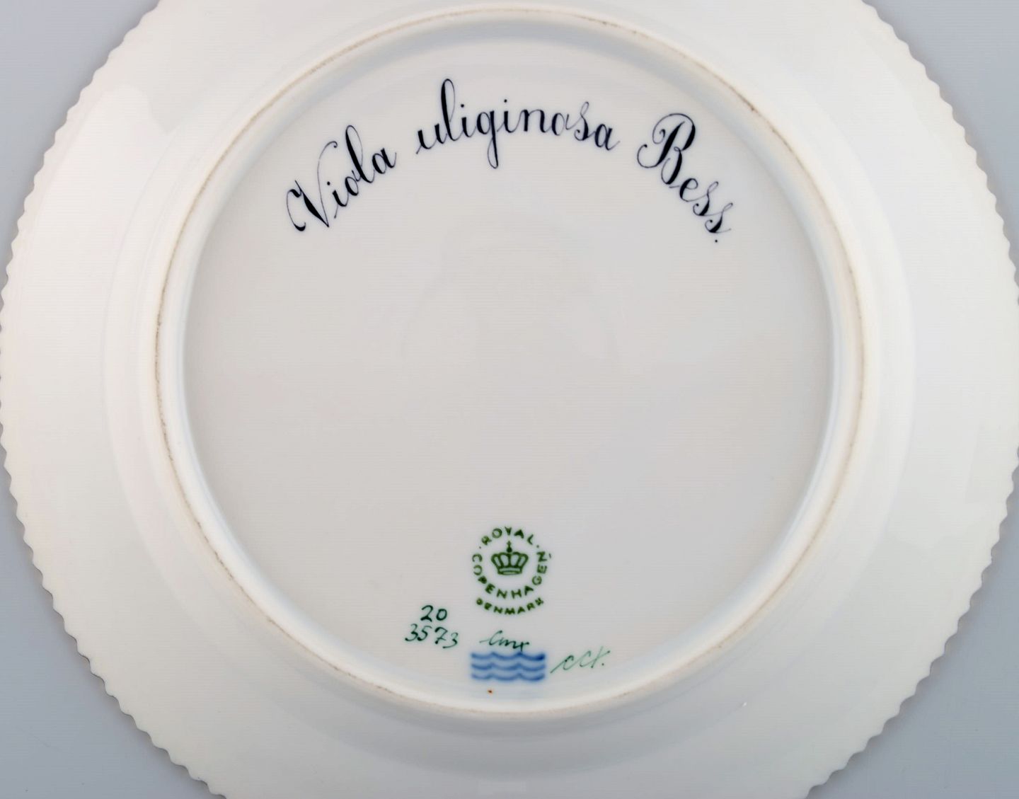 Royal Copenhagen Flora Danica salattallerken i håndmalet porcelæn med blomster og gulddekoration. Modelnummer 20/3573.