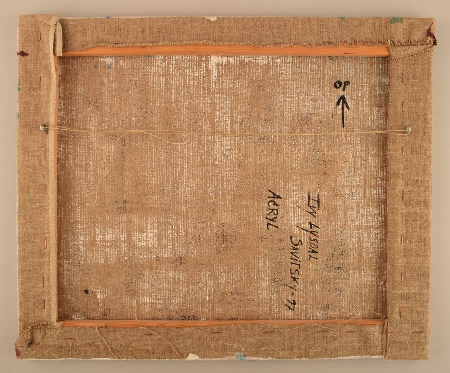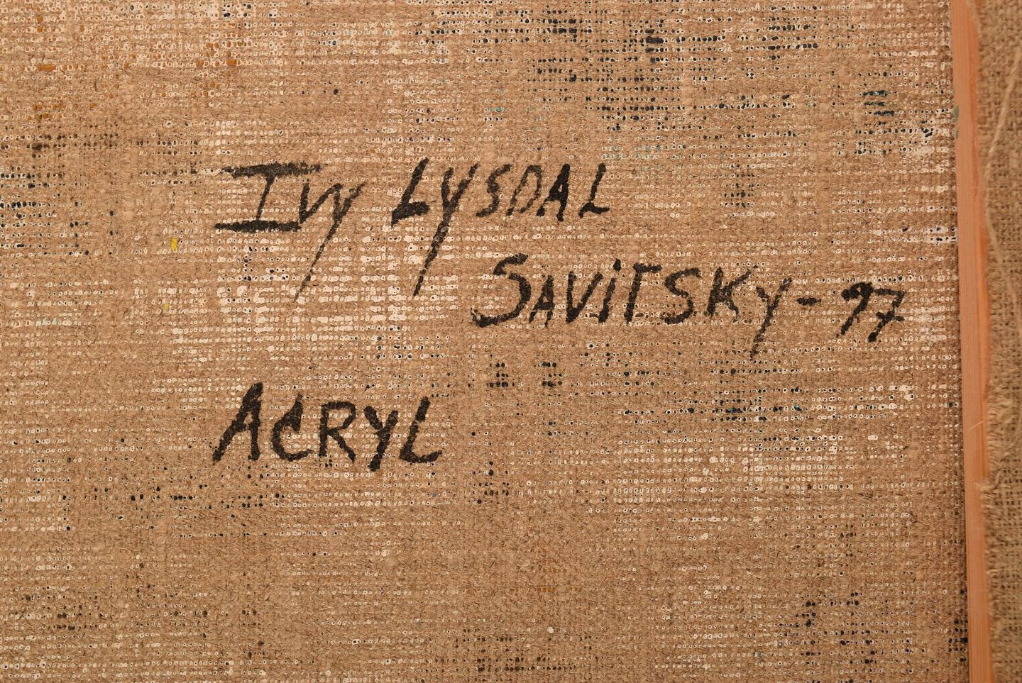 Ivy Lysdal, f 1937. Dansk keramiker og kunstmaler. Akryl på lærred. Abstrakt modernistisk maleri. Koloristisk palette. Dateret 1997.