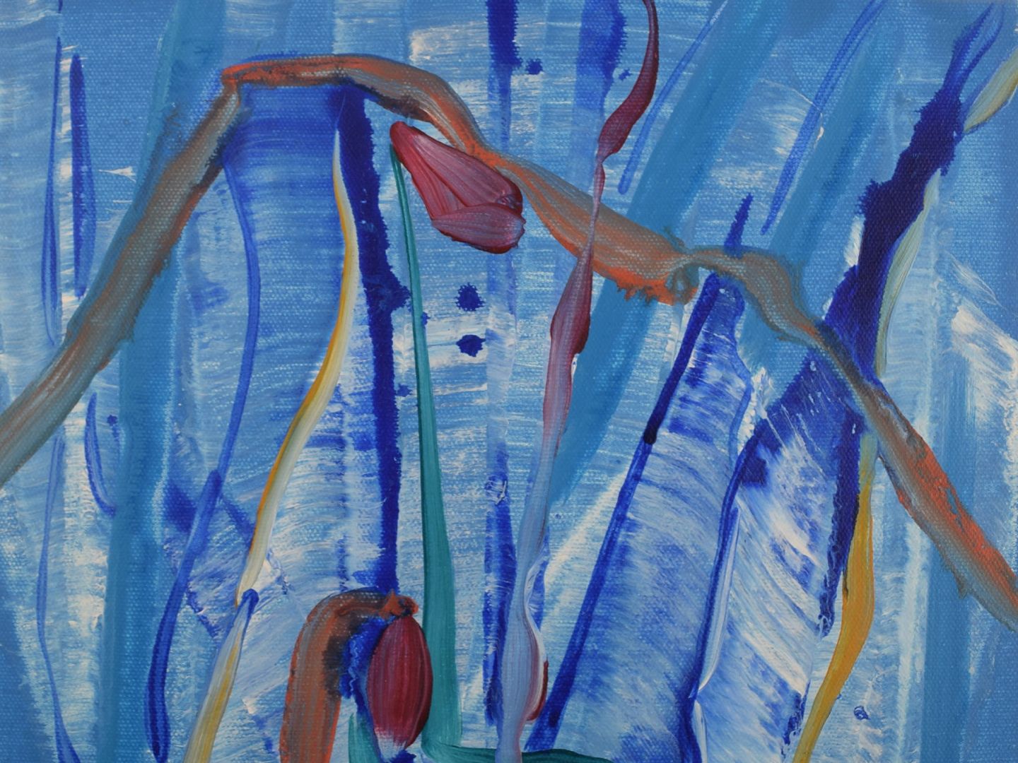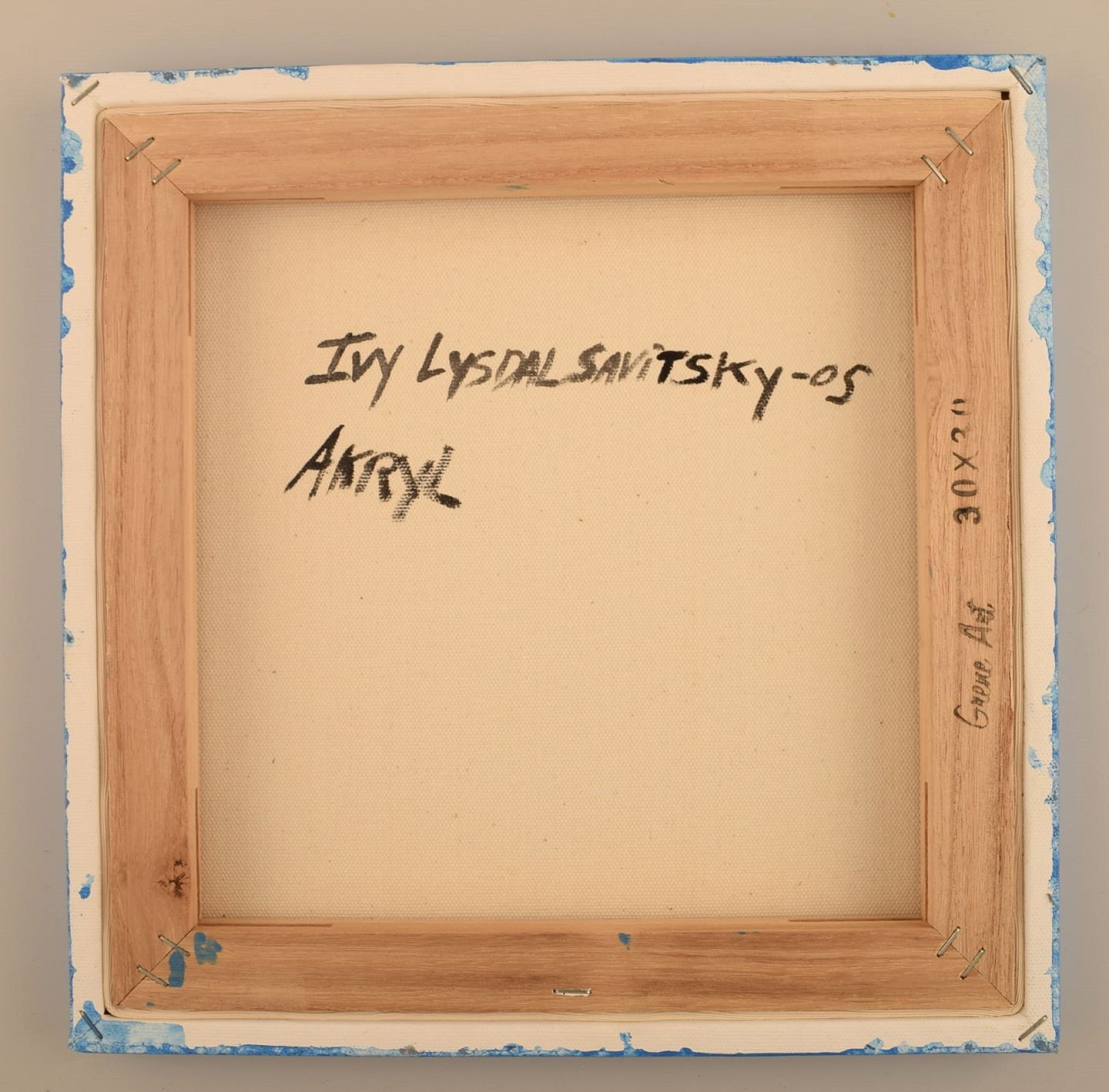 Ivy Lysdal, f 1937. Dansk keramiker og kunstmaler. Akryl på lærred. Abstrakt modernistisk maleri. Koloristisk palette. Dateret 2005.