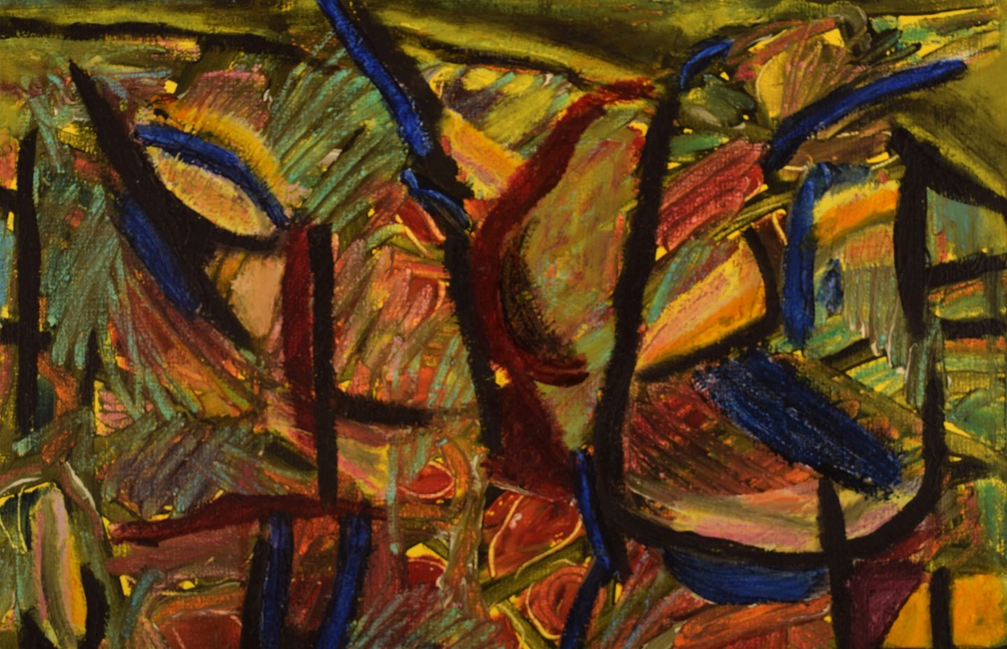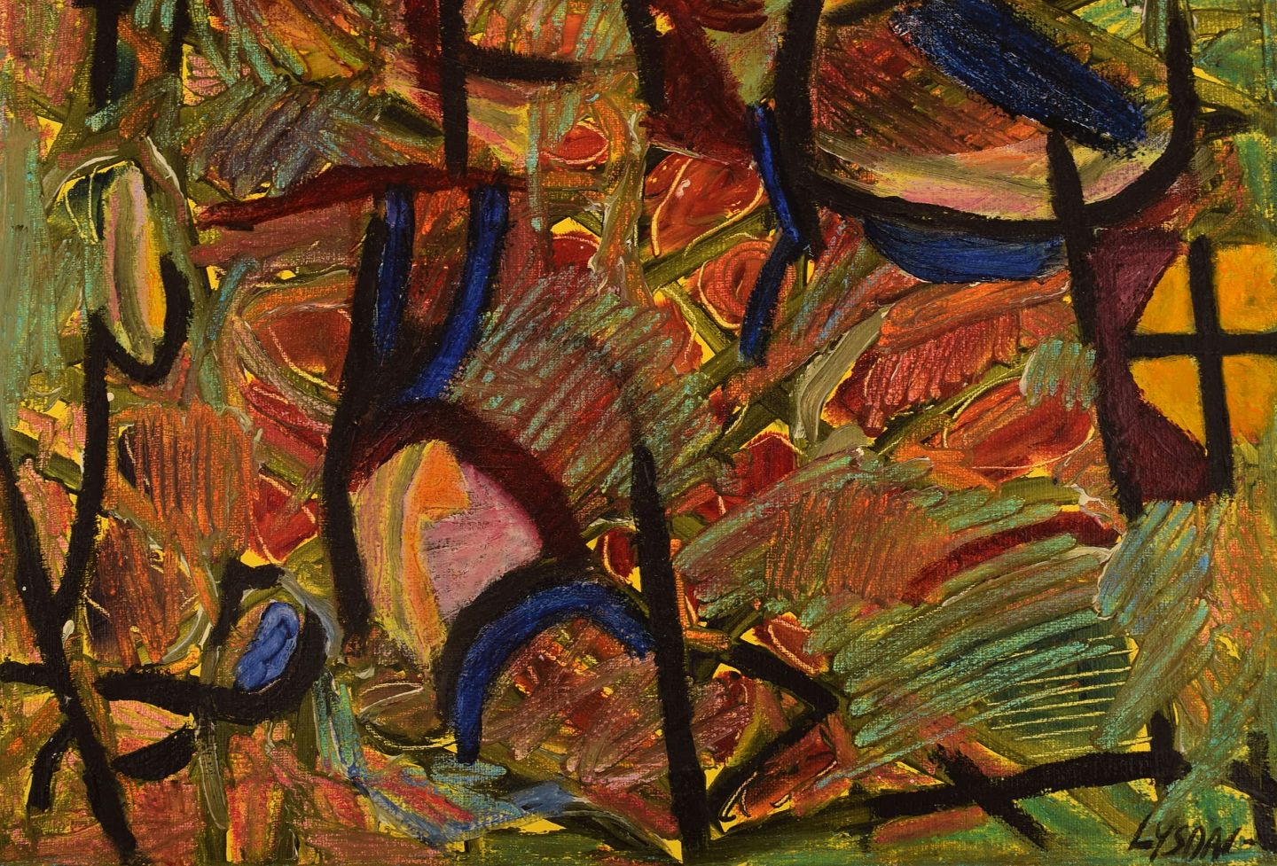 Ivy Lysdal, f 1937. Dansk keramiker og kunstmaler. Akryl på lærred. Abstrakt modernistisk maleri. Koloristisk palette. Dateret 2007.