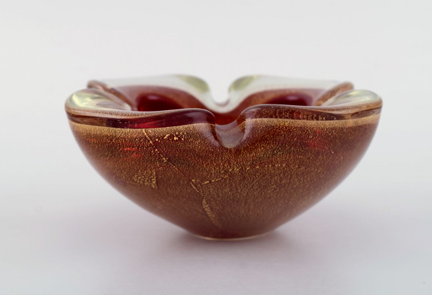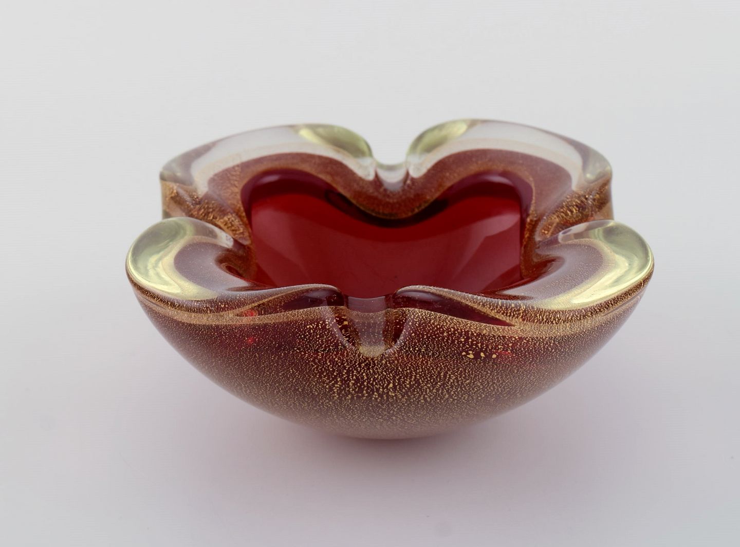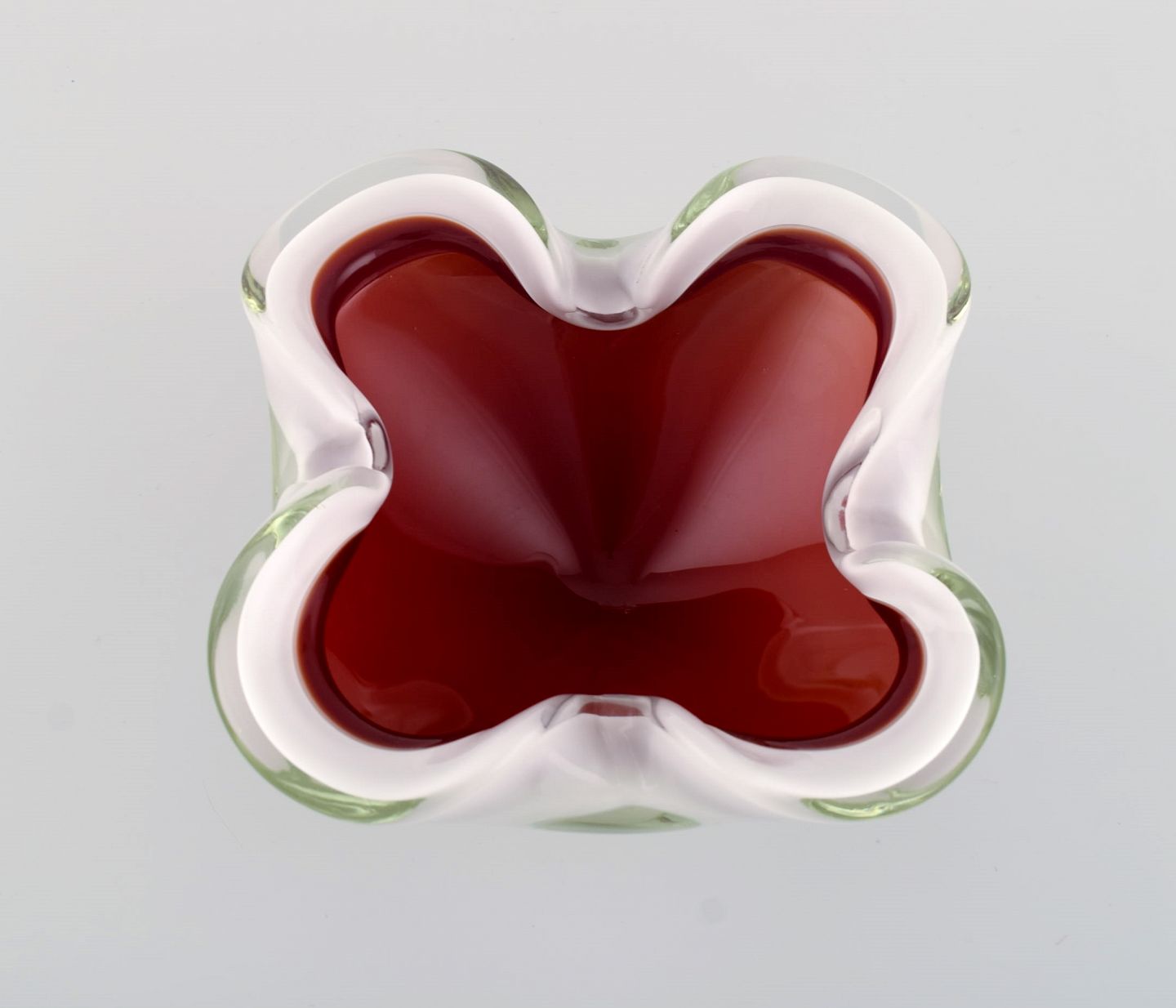To Murano skåle i rødt og hvidt mundblæst kunstglas. Italiensk design, 1960'erne.