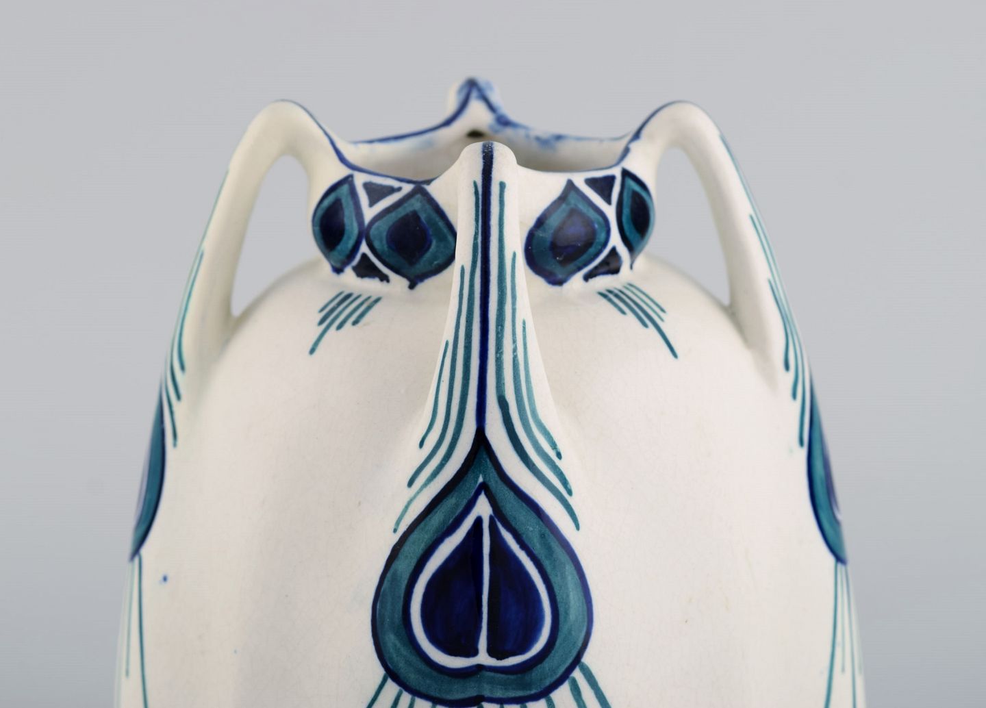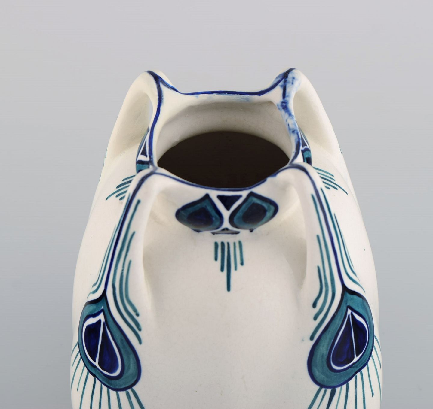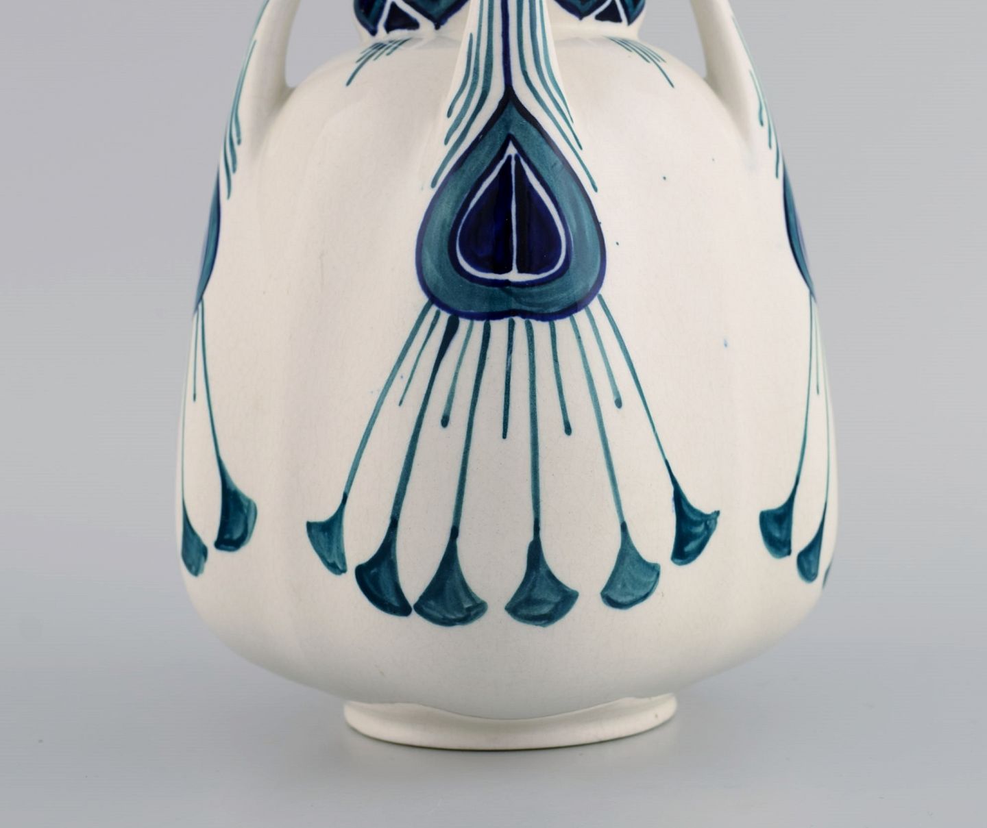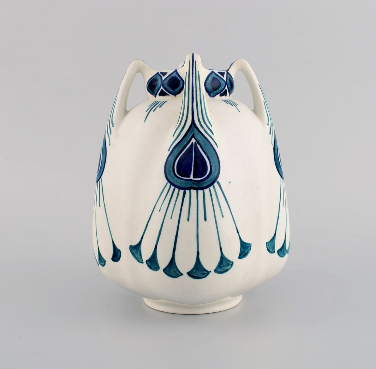 Alf Wallander for Rörstrand. Vase med fire hanke i håndmalet glaseret keramik. 1920'erne.