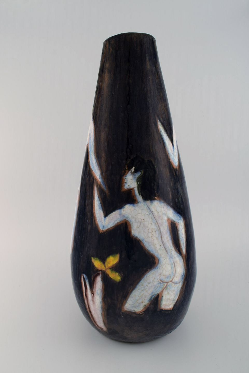 Marcello Fantoni (f.1915), Italien. Stor gulvvase i håndmalet glaseret keramik med nøgne kvinder. 1960'erne.