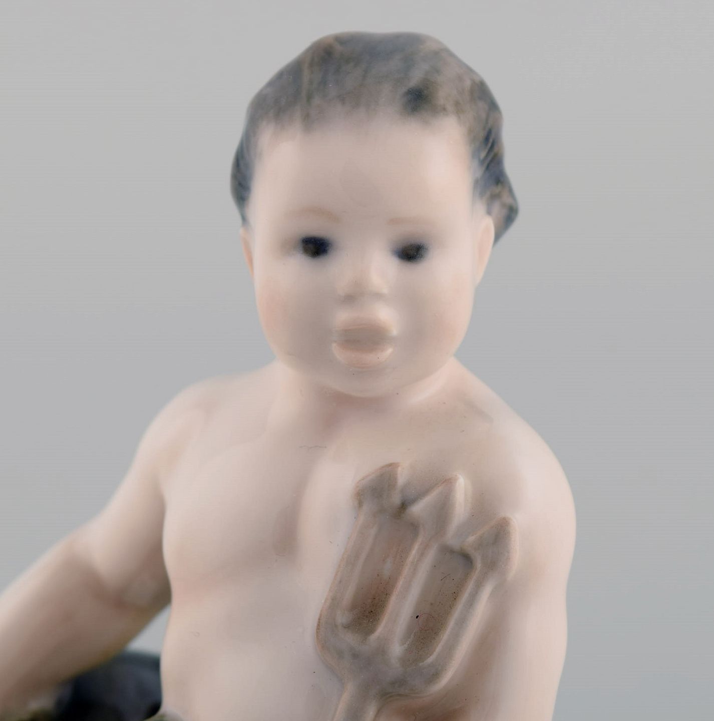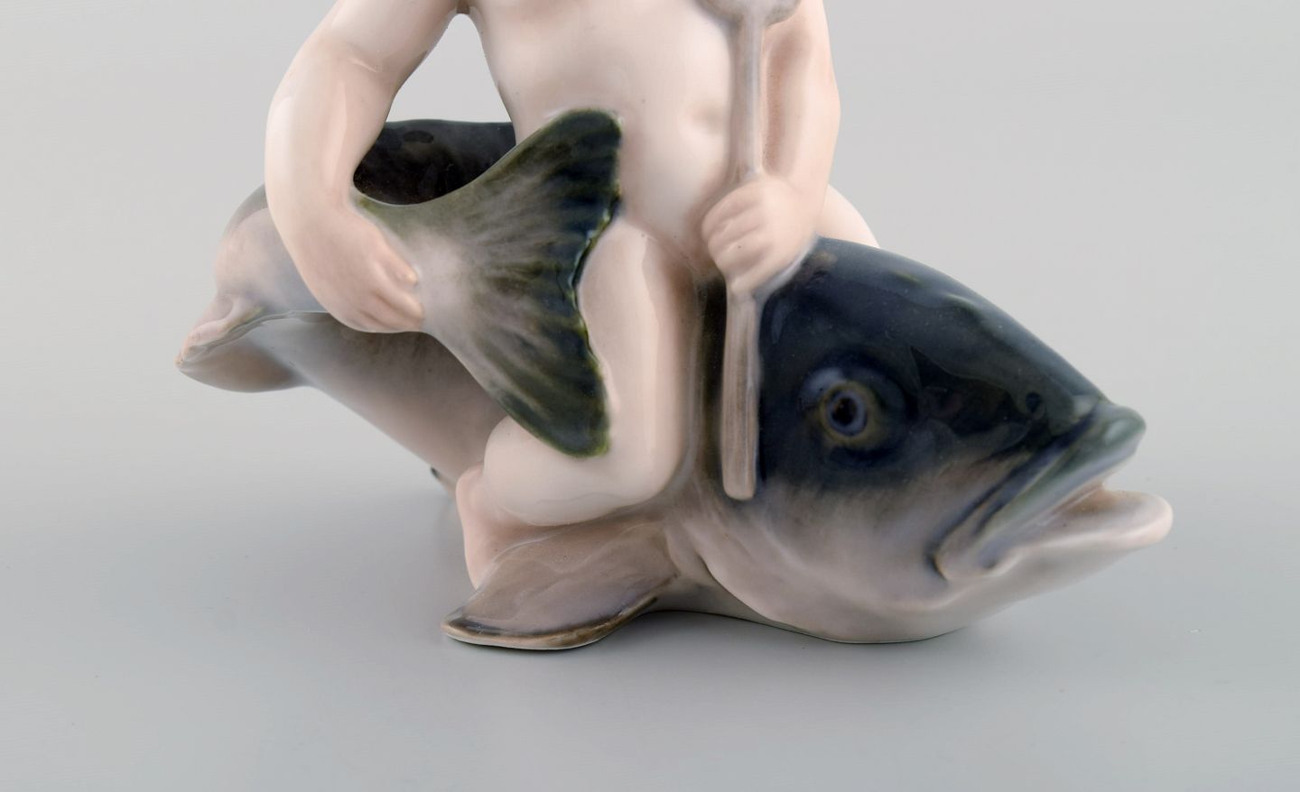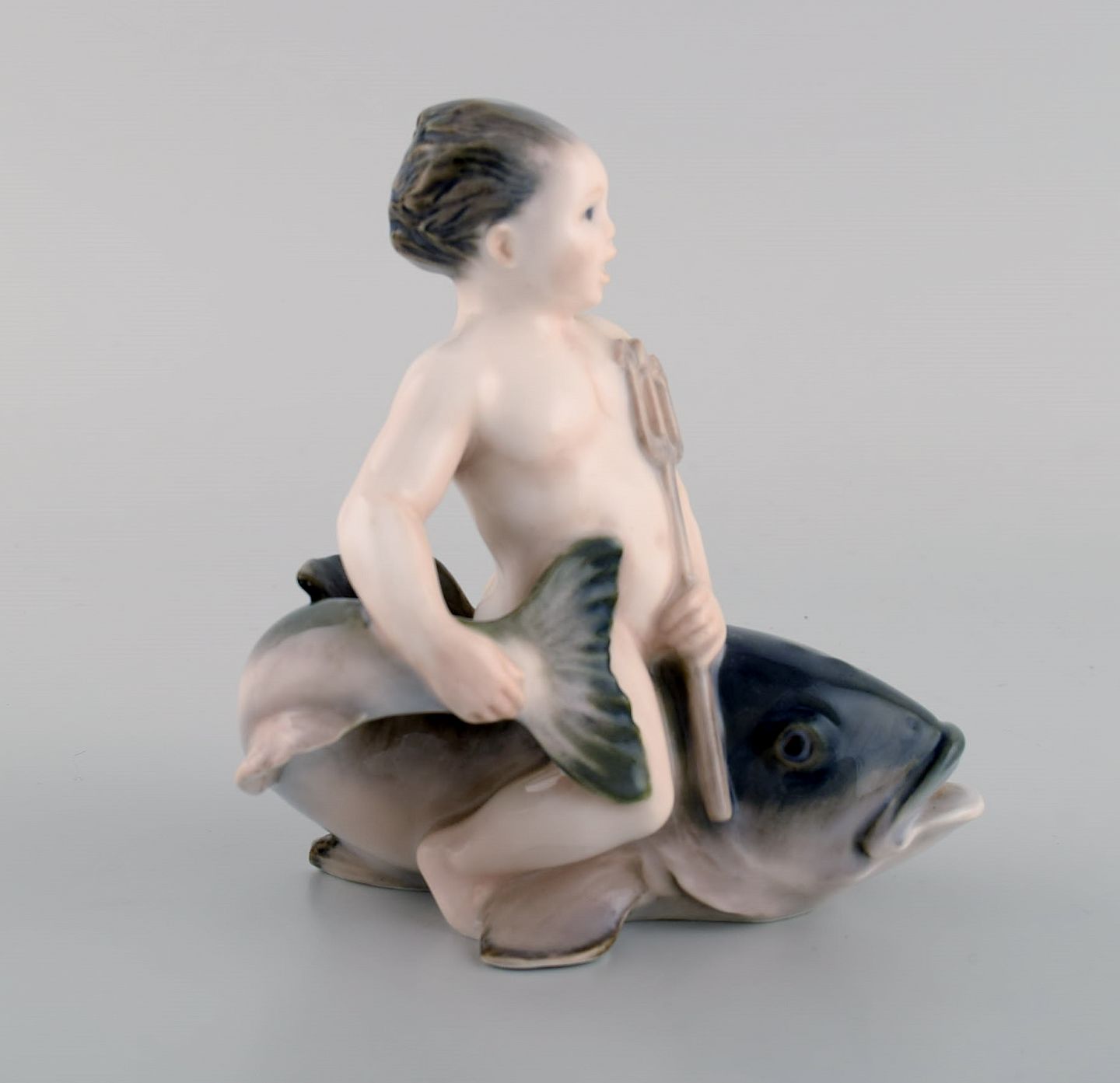 Sjælden Royal Copenhagen porcelænsfigur. Dreng siddende på fisk. 1920'erne. Modelnummer 2347.