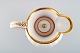 Antik Royal Copenhagen chokoladekande i håndmalet porcelæn med lyserødt bånd og gulddekoration. Dateret 1820-1850. Måler: 22 x 20 cm. I flot stand. Stemplet.