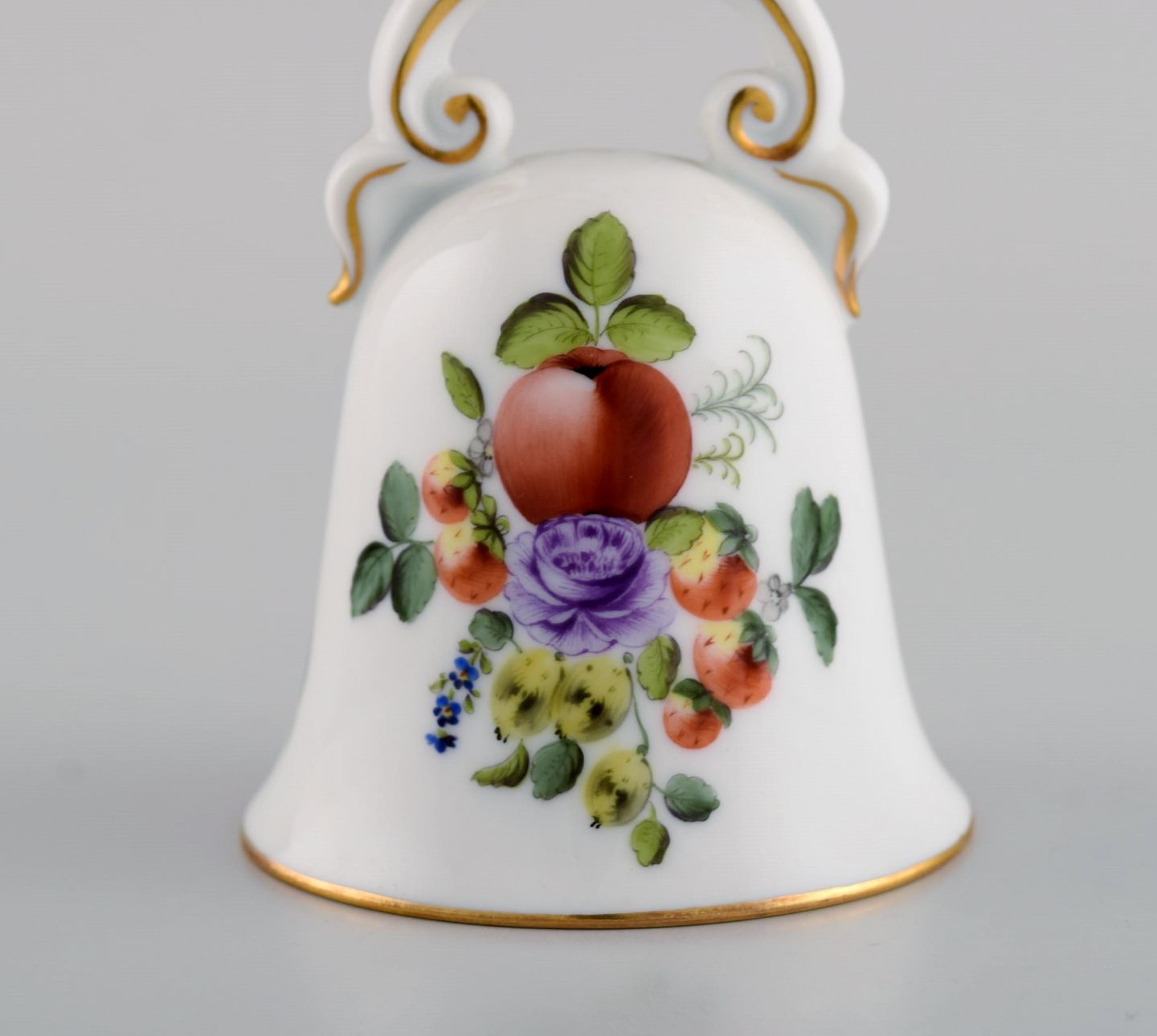 Herend bordklokke i håndmalet porcelæn med blomster og gulddekoration. 1980'erne. Måler: 12,5 x 7 cm. I flot stand. Stemplet.
