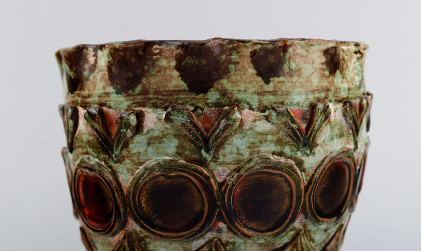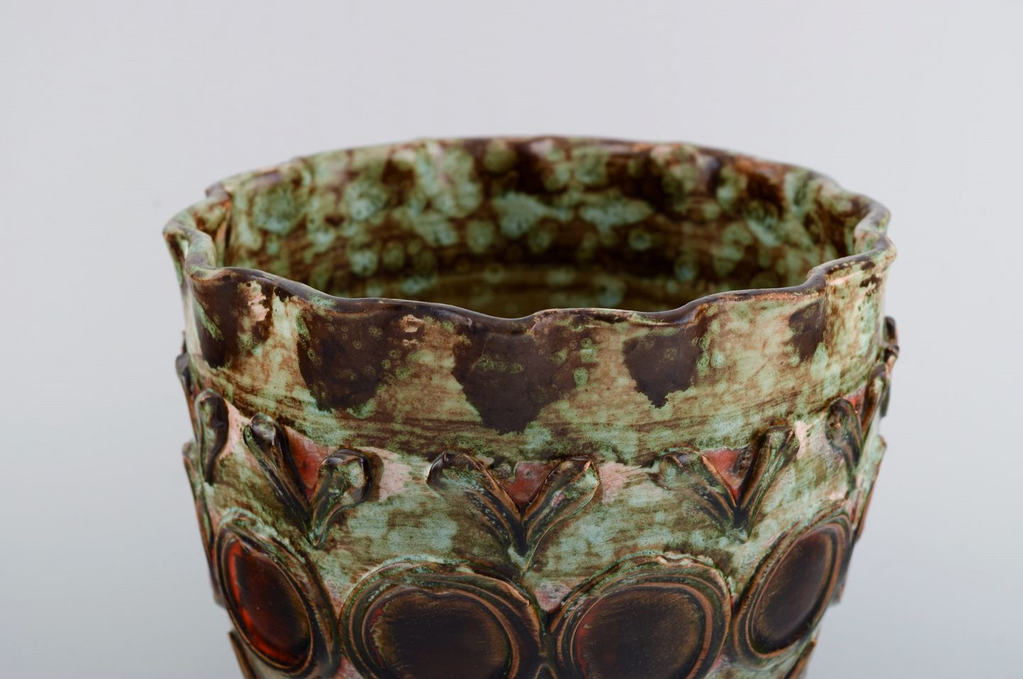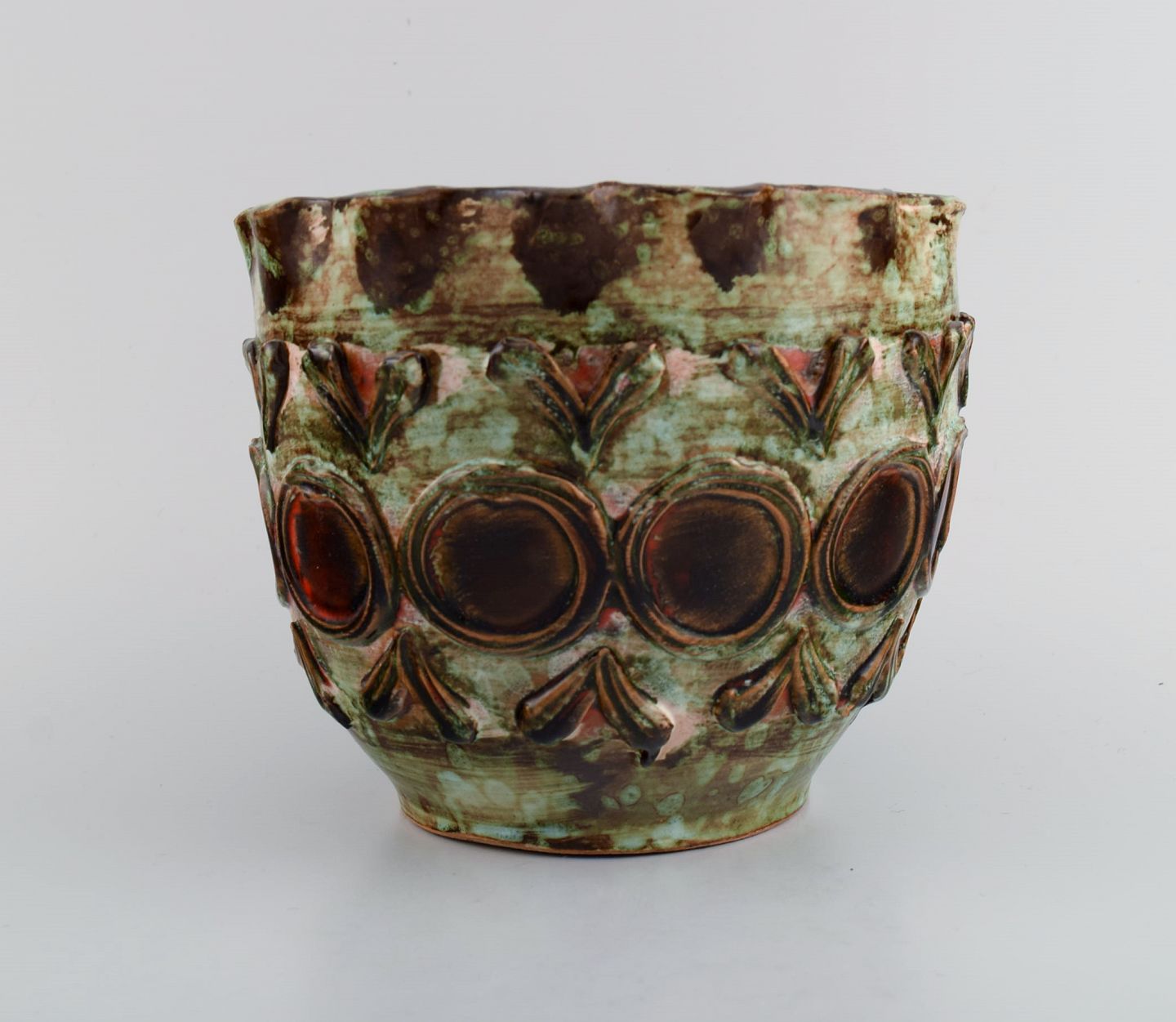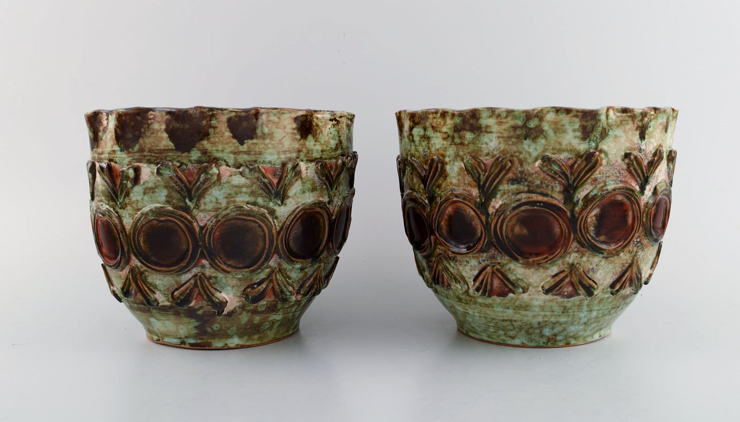 European studio ceramist. Two flower pots in glazed ceramics. 1960s / 70s.