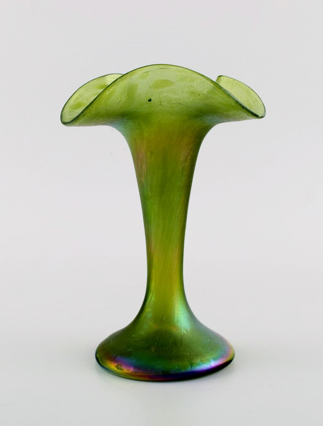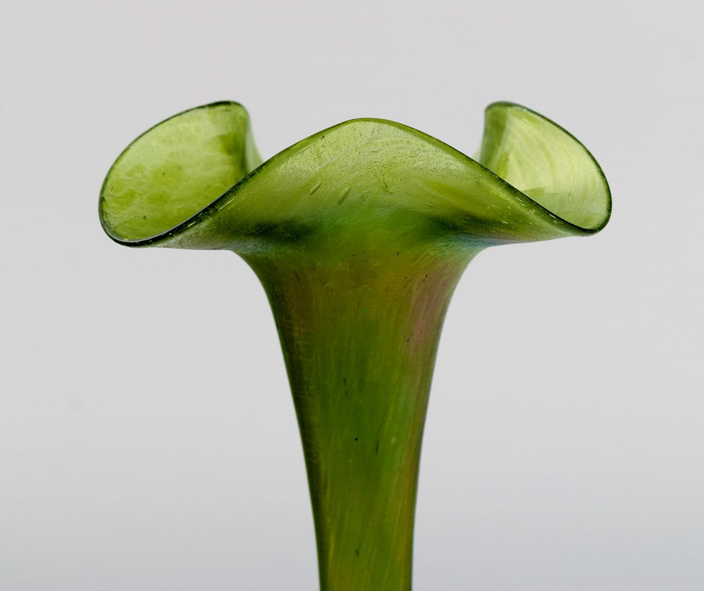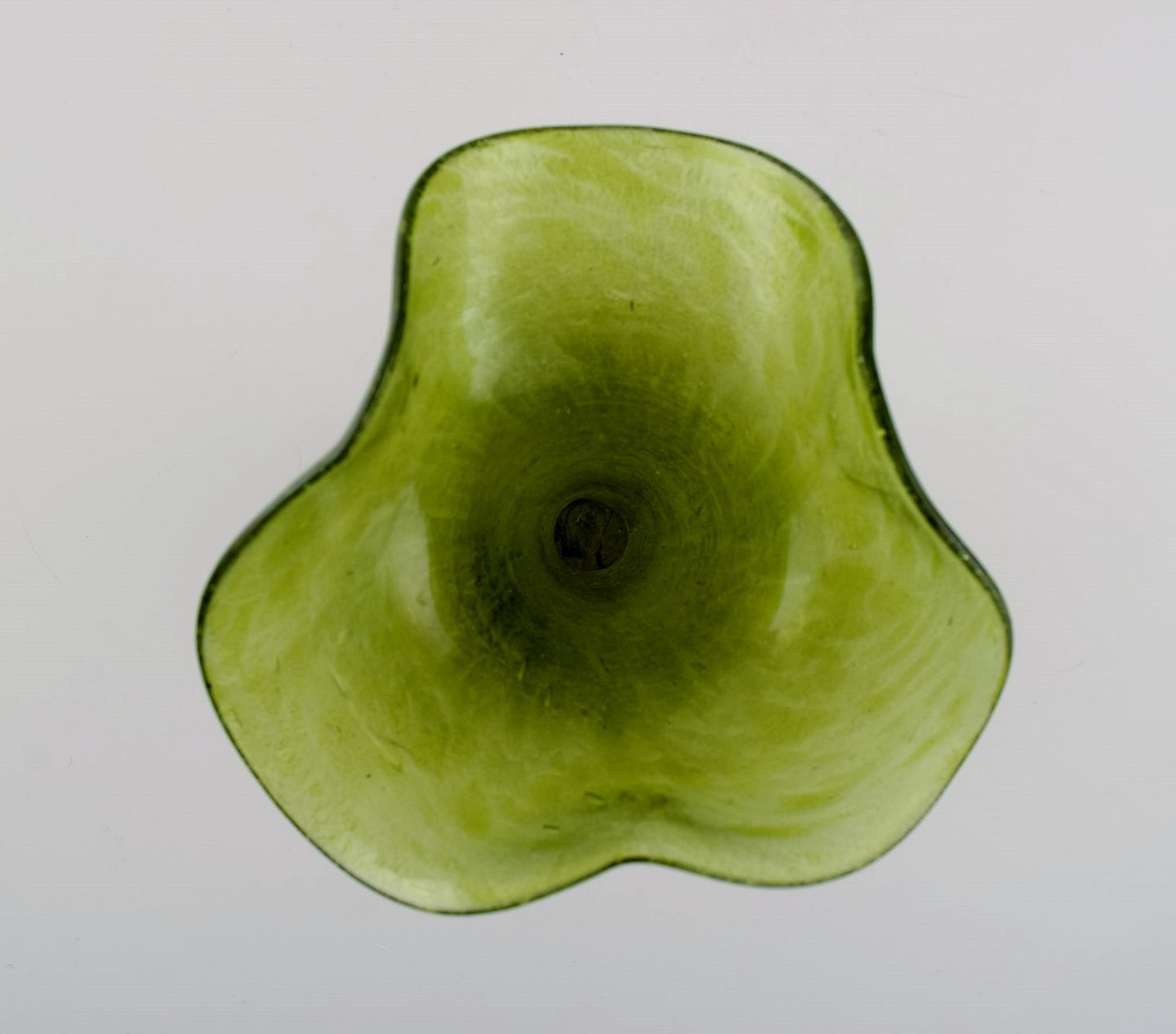 Pallme-König art nouveau vase i grønt mundblæst kunstglas. Ca. 1900. Måler: 18 x 12 cm. I flot stand.