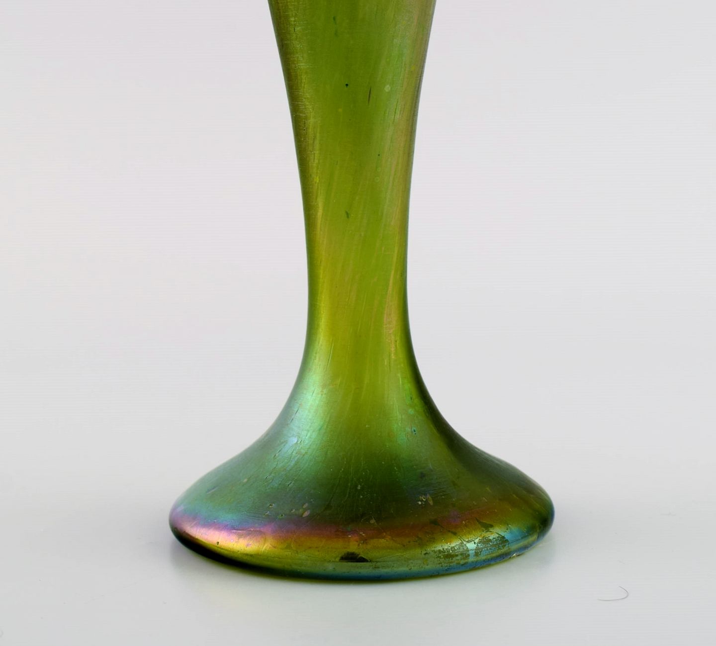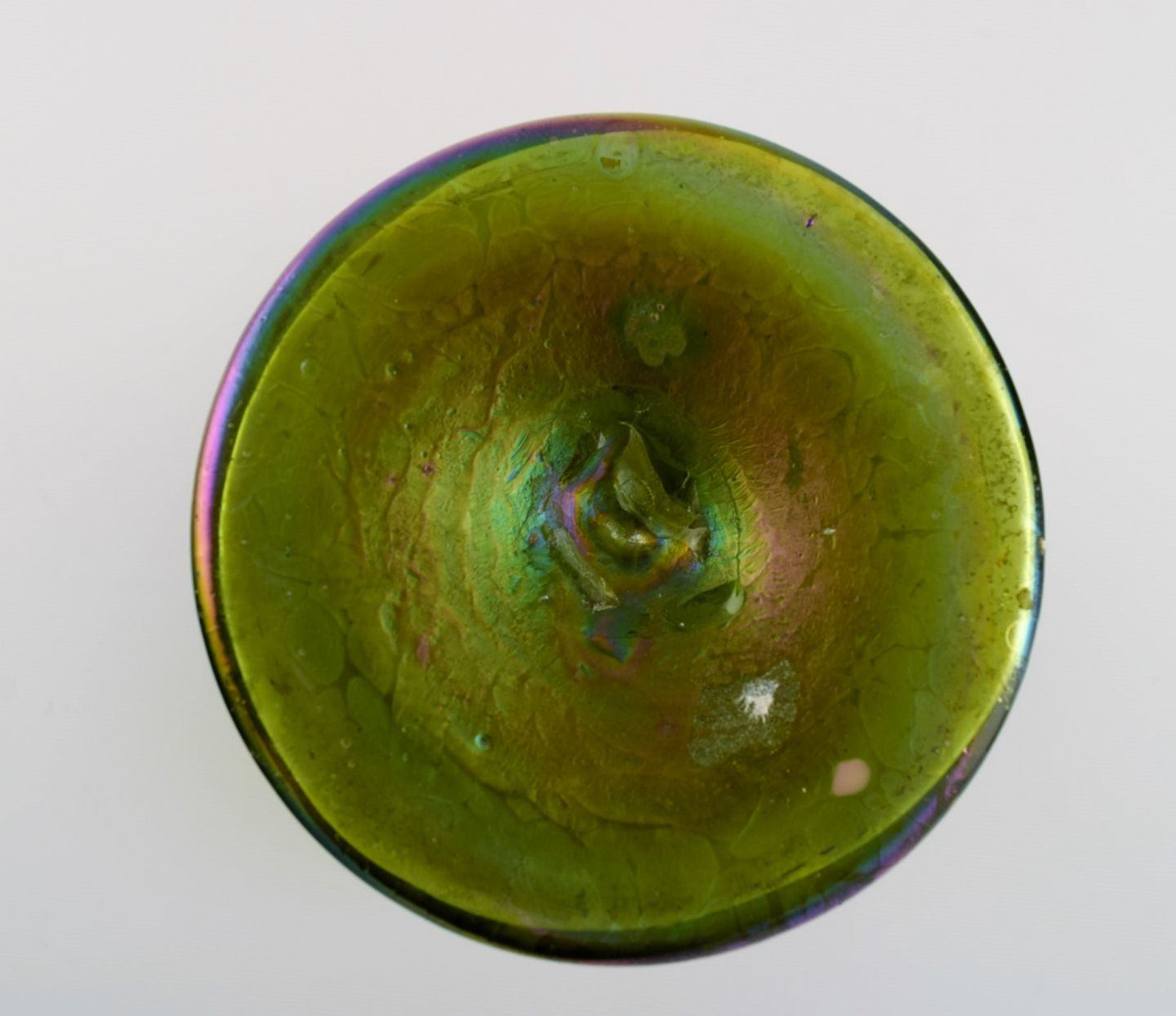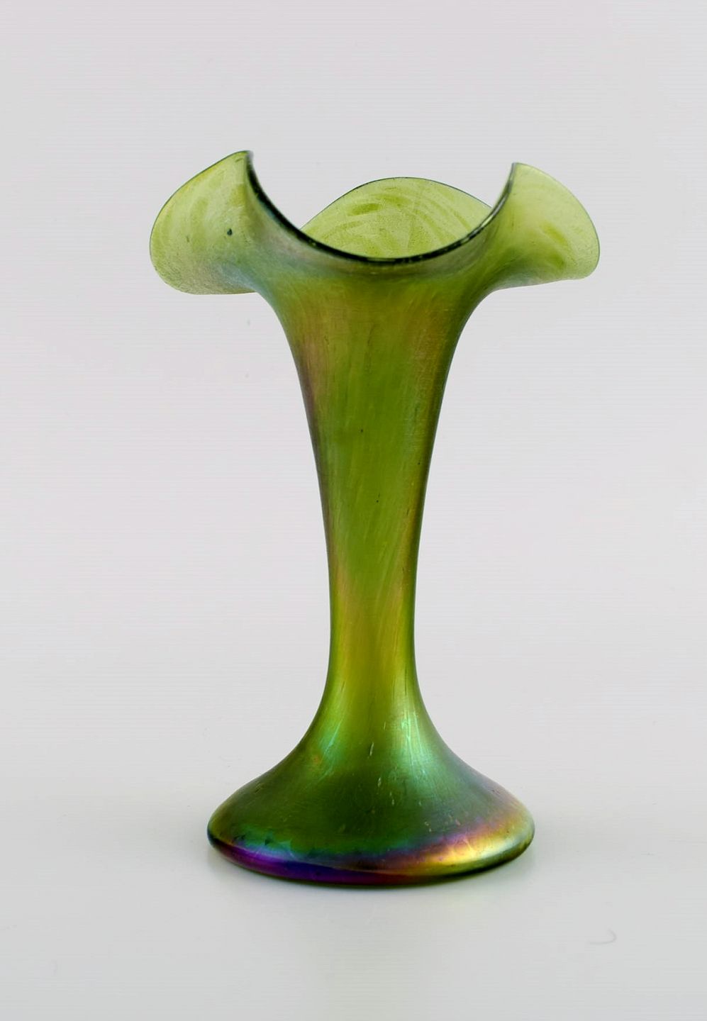 Pallme-König art nouveau vase i grønt mundblæst kunstglas. Ca. 1900. Måler: 18 x 12 cm. I flot stand.