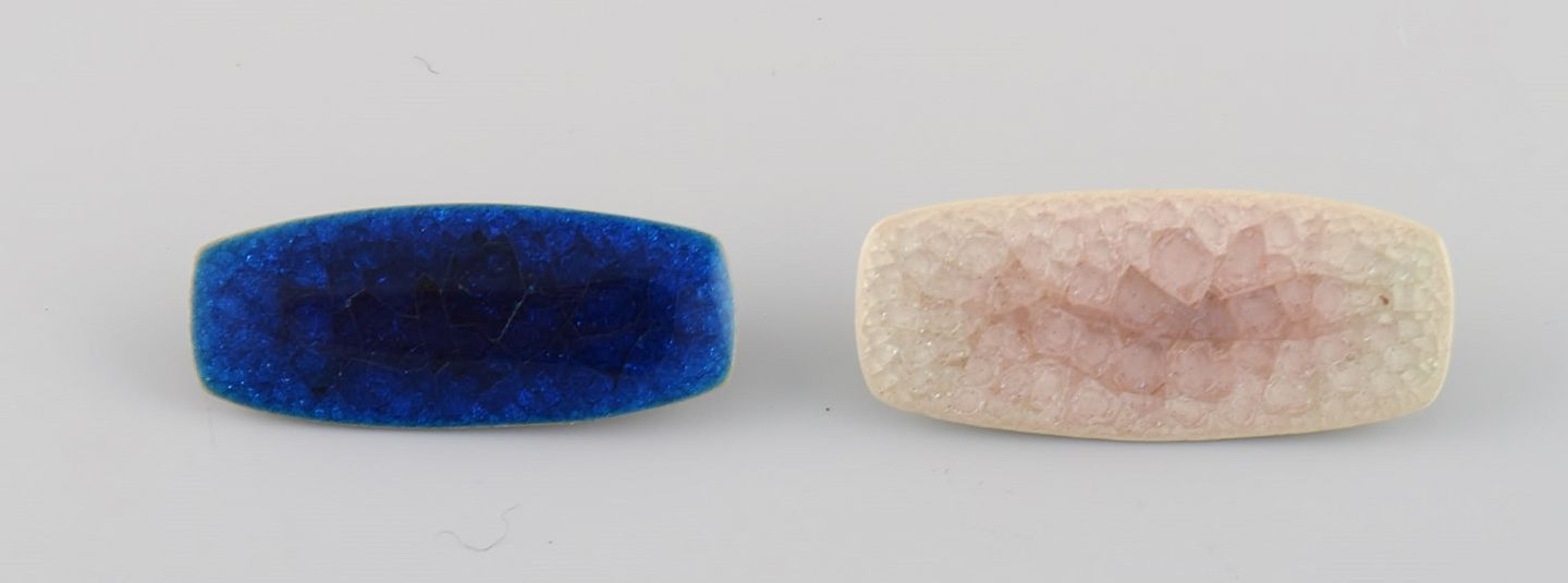Ole Bjørn Krüger (1922-2007), dansk billedhugger og keramiker. Otte unika brocher i glaseret stentøj. 1960/70'erne.