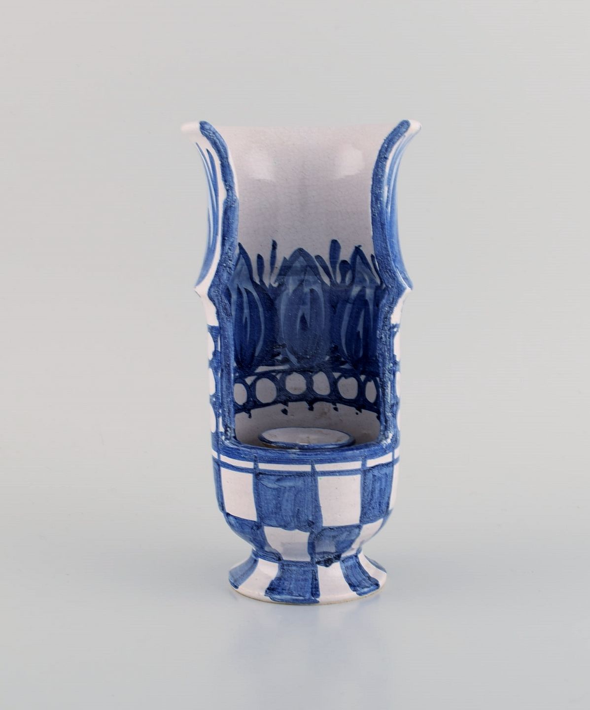 Bjørn Wiinblad (1918-2006), Danmark. To lysestager i håndmalet glaseret keramik. Dateret 1970. Måler: 20,5 x 10,5 cm. I flot stand. Stemplet.