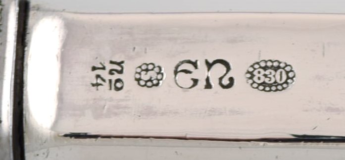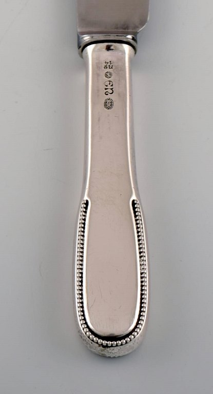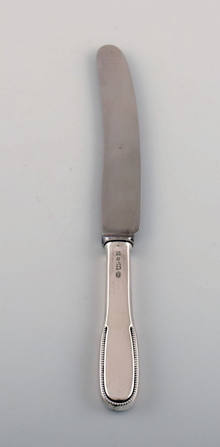 Evald Nielsen nummer 14 frokostkniv i hammerslået sølv (830) og rustfrit stål. 1920'erne.