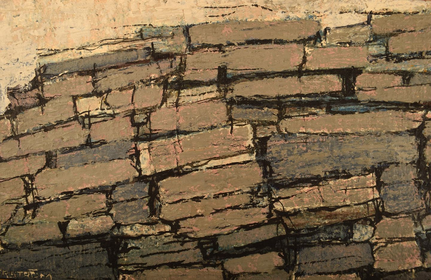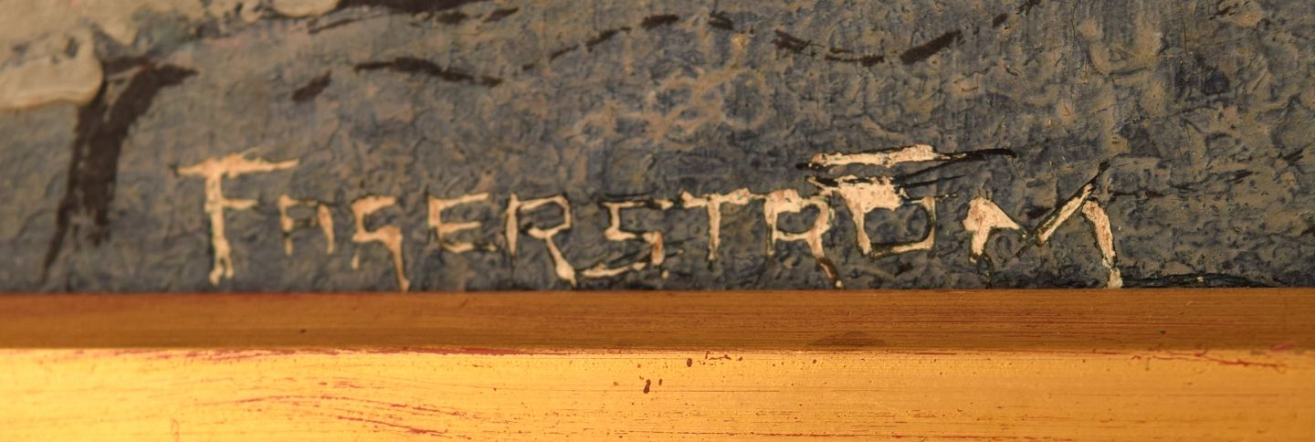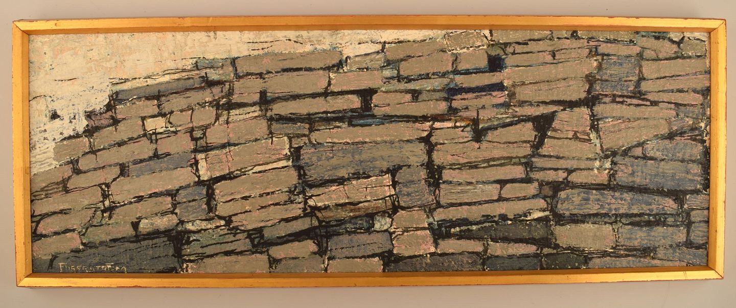 Hans Fagerström (1921-2000), Sverige. Olie på plade. Modernistisk komposition. 1960'erne. Pladen måler: 71 x 24,5 cm. Rammen måler: 2,5 cm. I flot stand. Signeret.