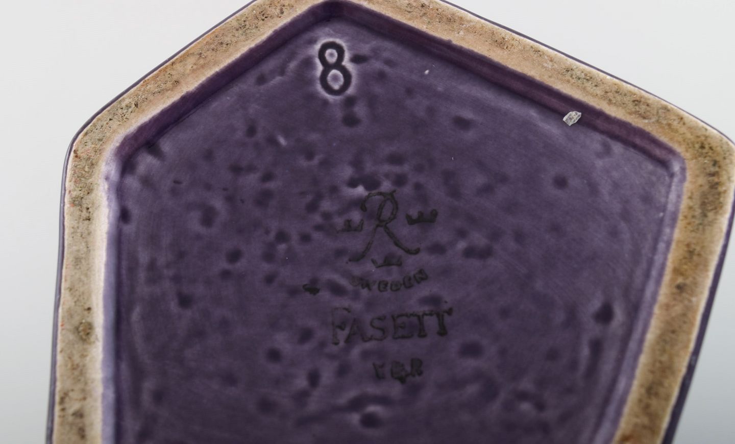 Vilhelm Bjerke Petersen (1909-1957) for Rörstrand. Fasett vase i glaseret keramik. Smuk glasur i lilla nuancer. Midt 1900-tallet.