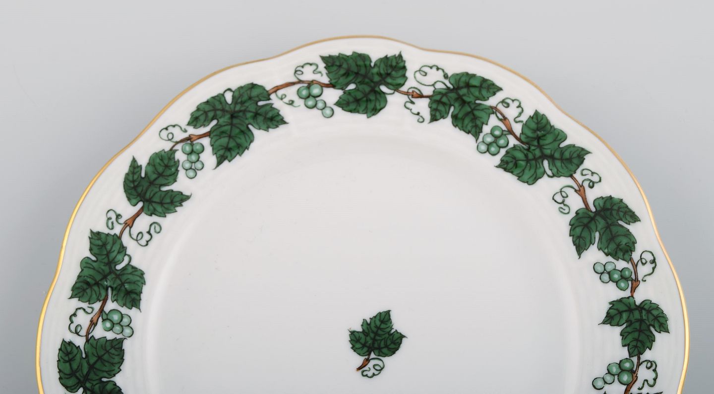 Fem Herend Green Grape Leaf & Vine sidetallerkener i håndmalet porcelæn. Midt 1900-tallet. Diameter: 17 cm. I flot stand. Stemplet.