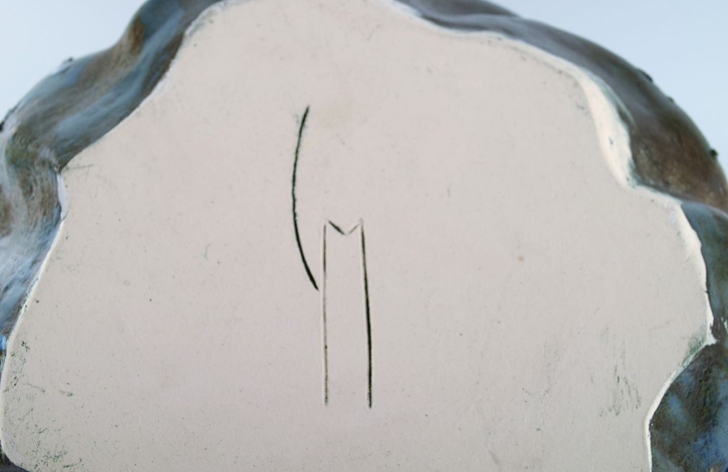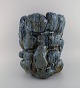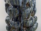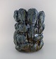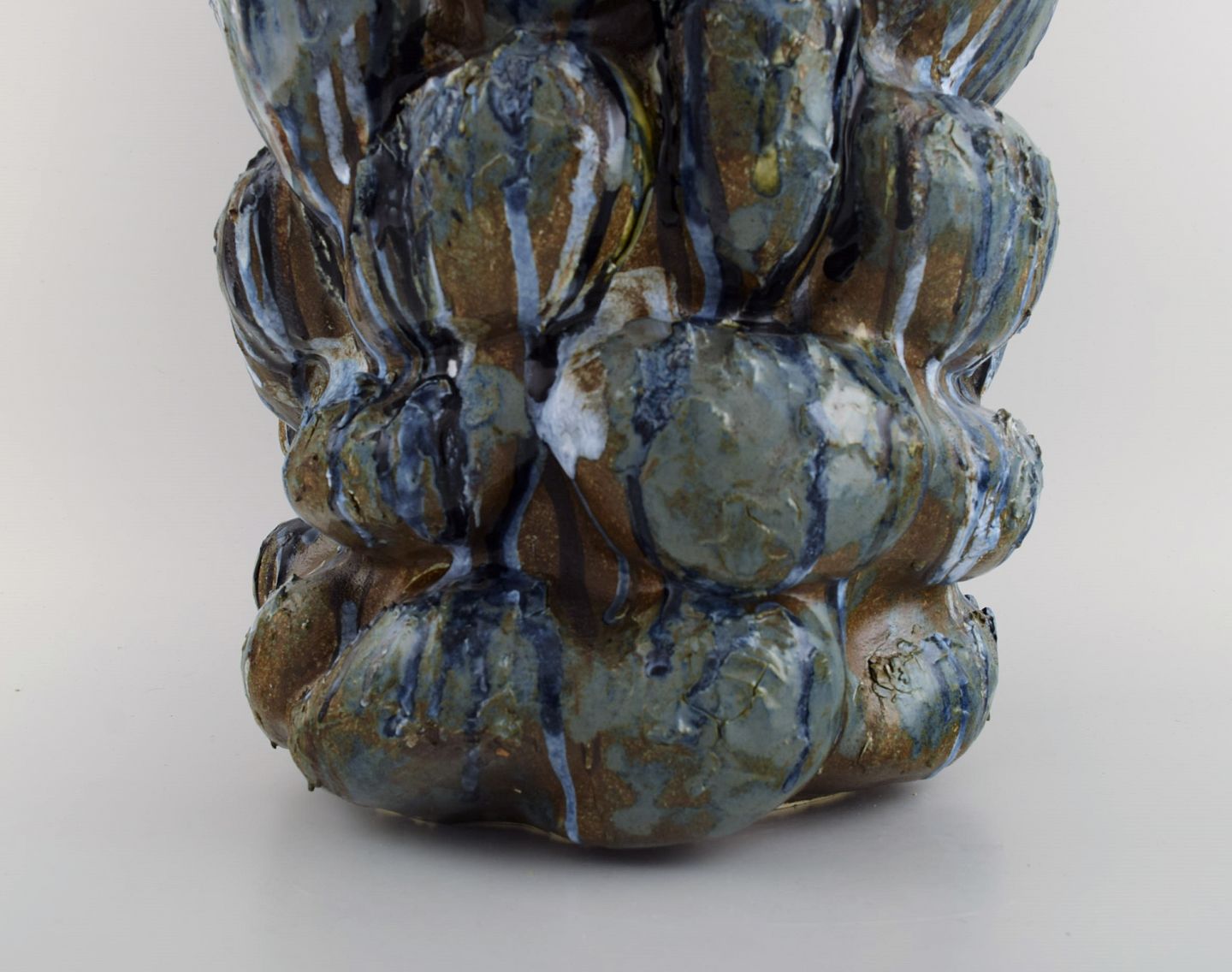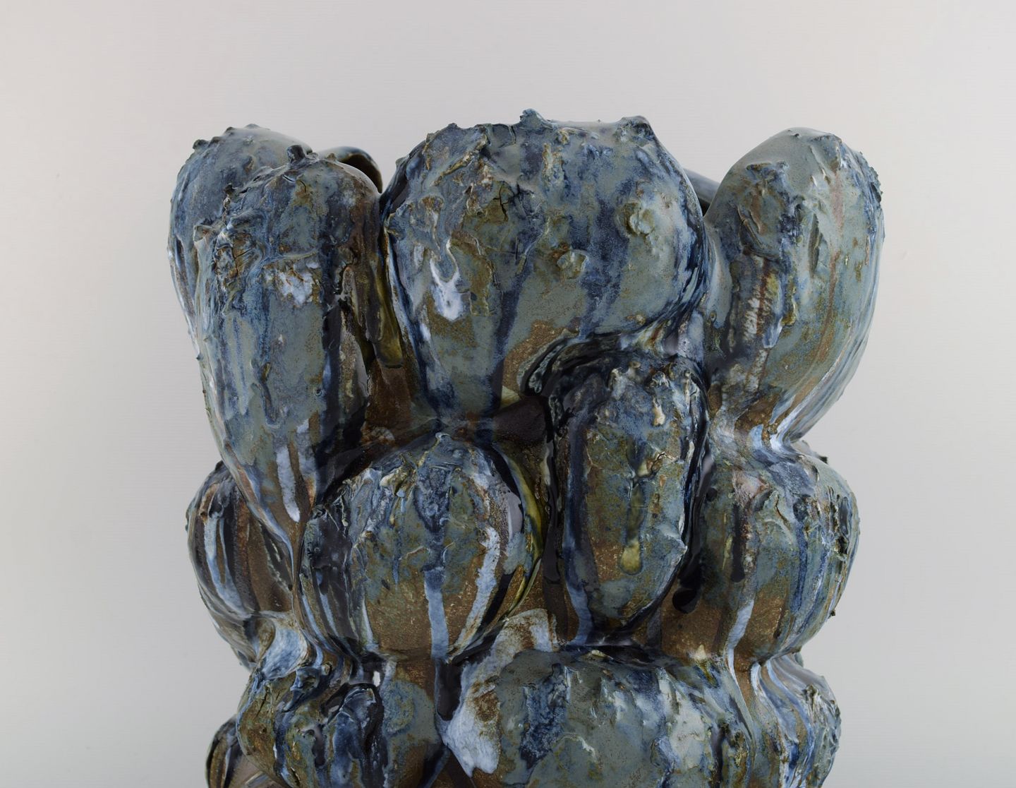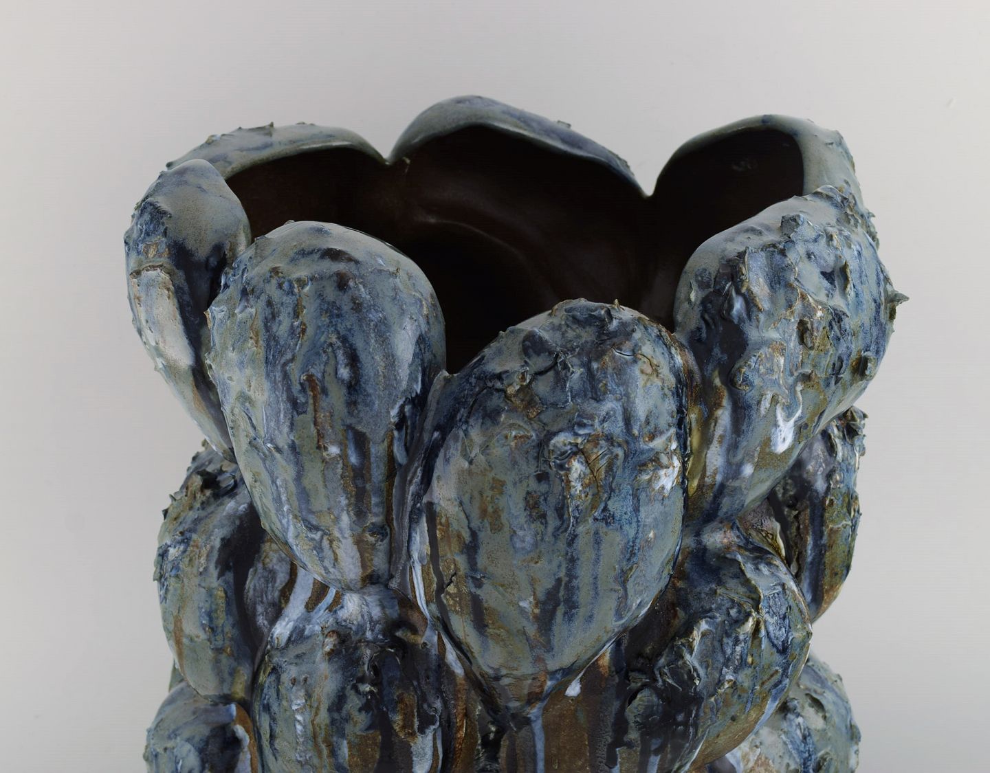 Christina Muff, Danish contemporary ceramicist (b. 1971). Large, hand modeled stoneware sculptural vase with protrusions. This vessel is glazed in hues of grey and blue with brown areas in the depths. Part of the 'Salt' series by Christina Muff. One of a kind. Measures: 38 x 31 cm.