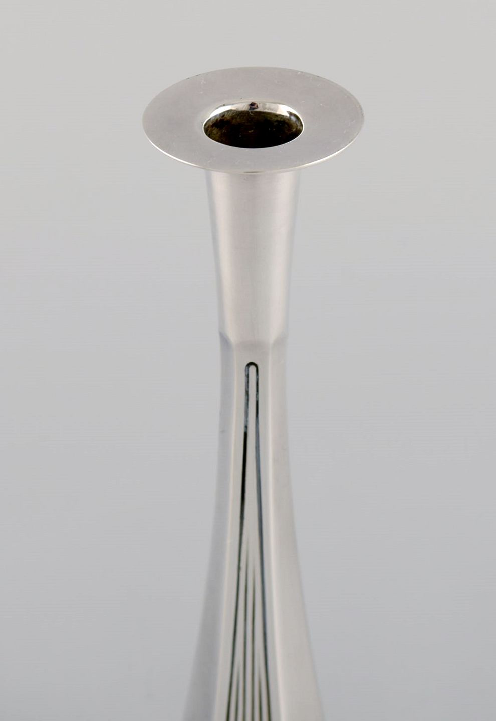 Wiwen Nilsson Lund, Sverige (f. 1897, d. 1974). Et par modernistiske stager i sølv. Dateret 1963.