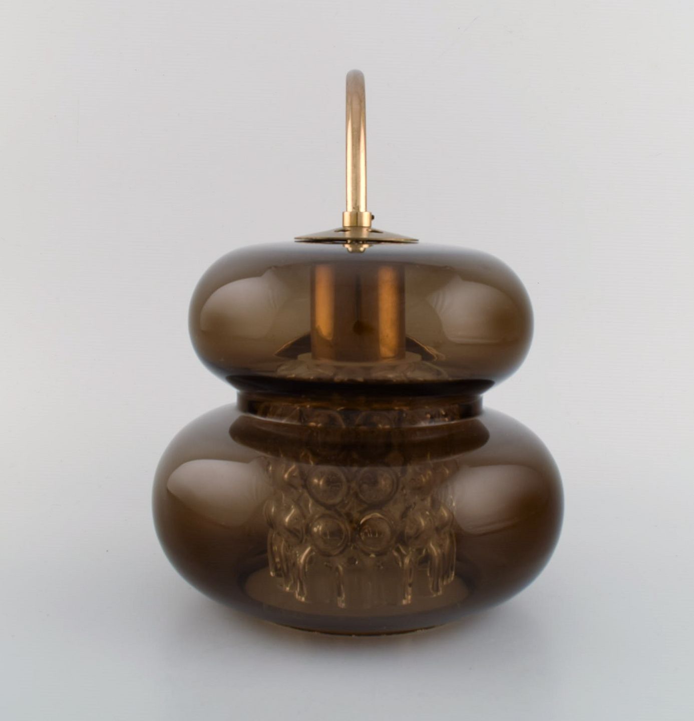 Carl Fagerlund for Orrefors. "Bubblan" væglampe i røgfarvet og klart kunstglas. Messing montering. Sjælden model. Svensk design, 1970'erne.