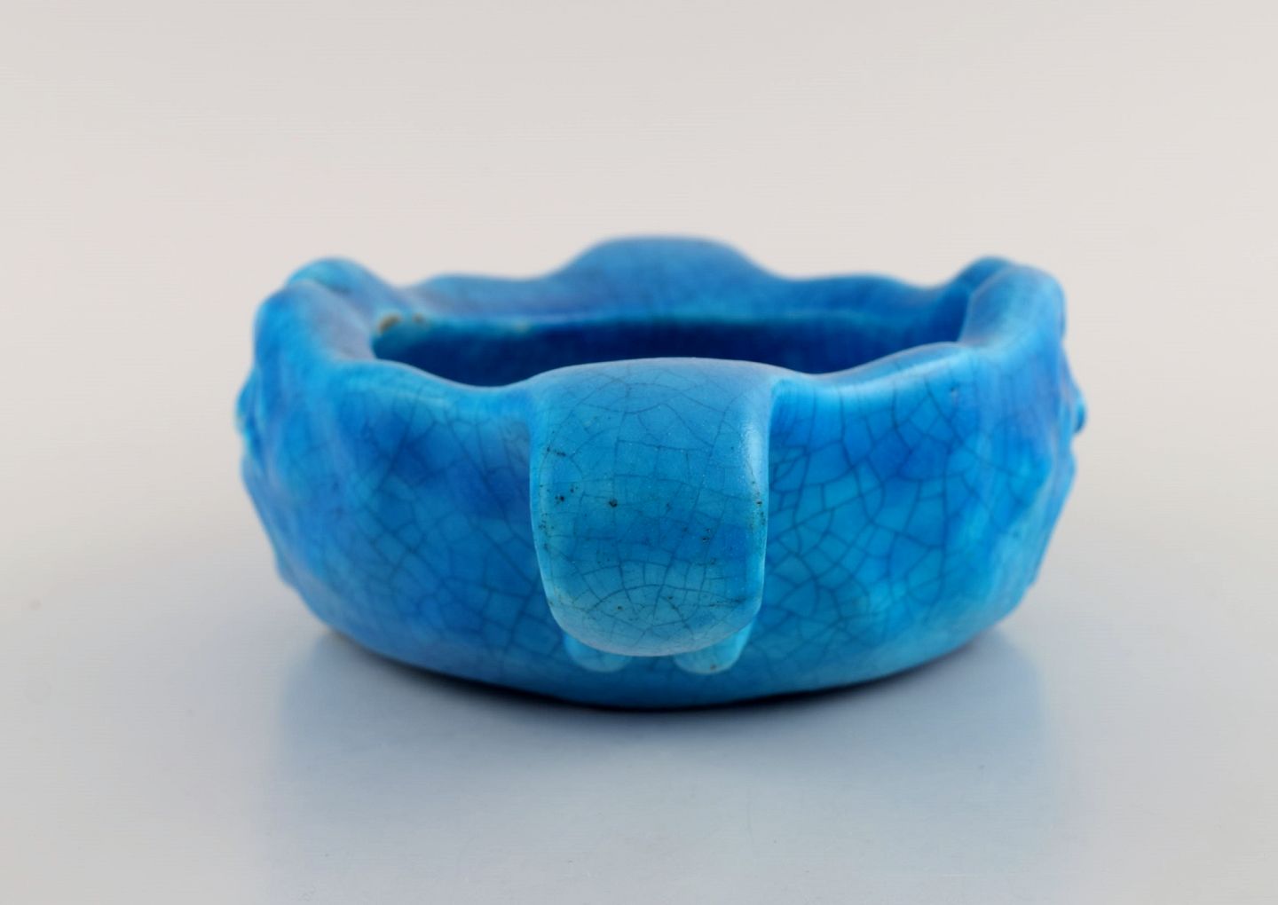 Edmond Lachenal (1855-1948), Frankrig. Unika art nouveau skål med hanke i glaseret keramik med motiv af grotesk. Smuk turkis glasur. Dateret 1910-1920. Måler: 28,5 x 7,5 cm. I flot stand. Utydeligt signeret.