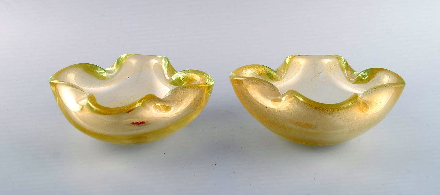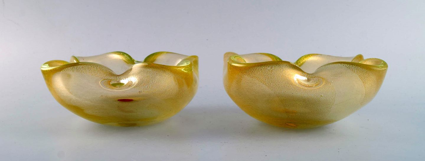 To Murano skåle i mundblæst kunstglas. Italiensk design, 1960'erne. Måler: 15 x 7 cm. I perfekt stand. Mærkat.