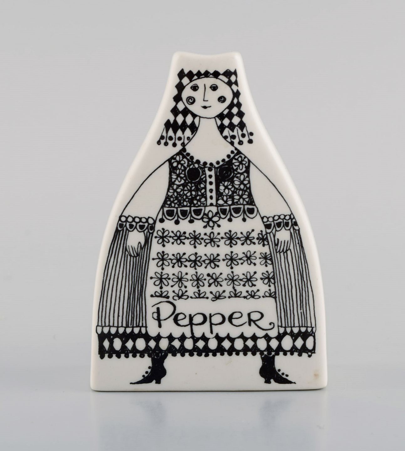 Skandinavisk designer. Salt- og peberbøsse i glaseret fajance. 1970/80'erne. Måler: 10 x 7,2 cm. I flot stand.