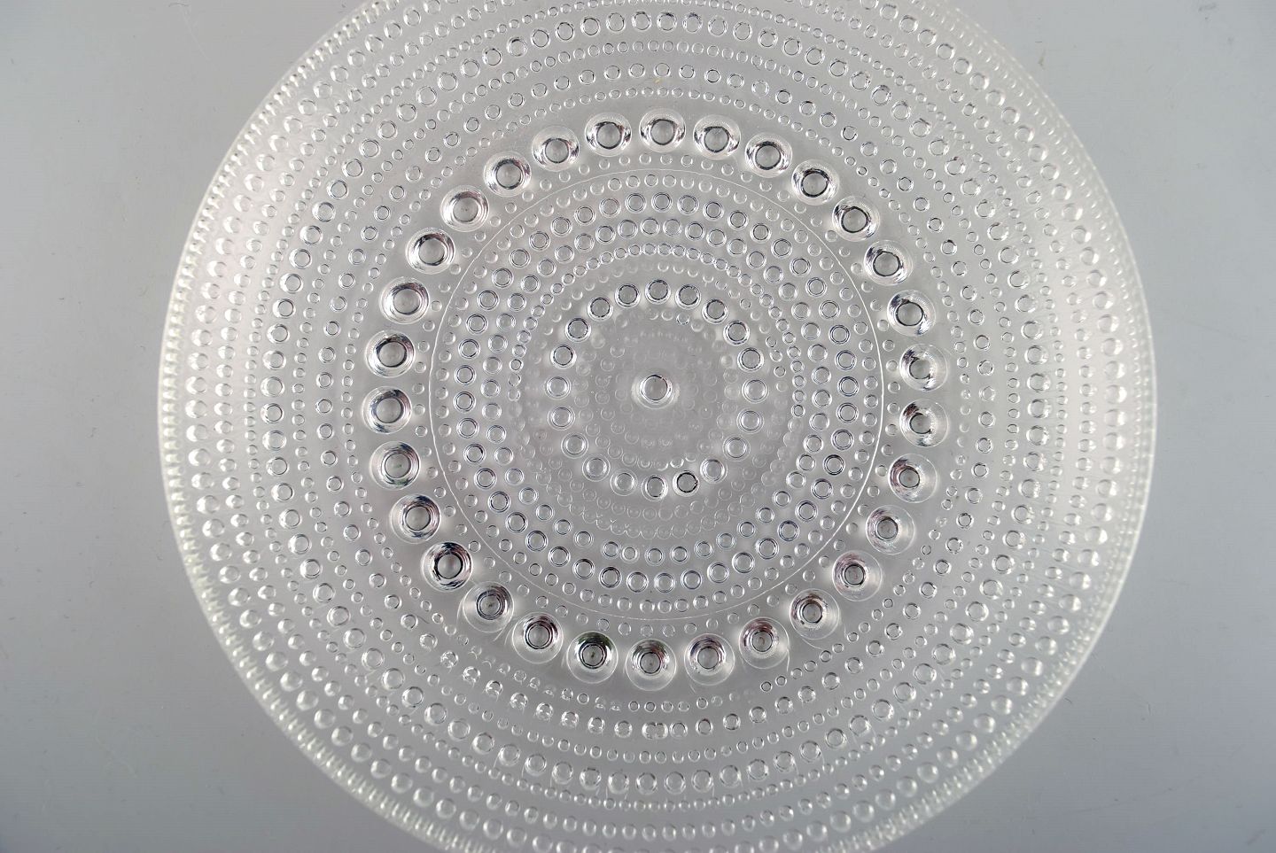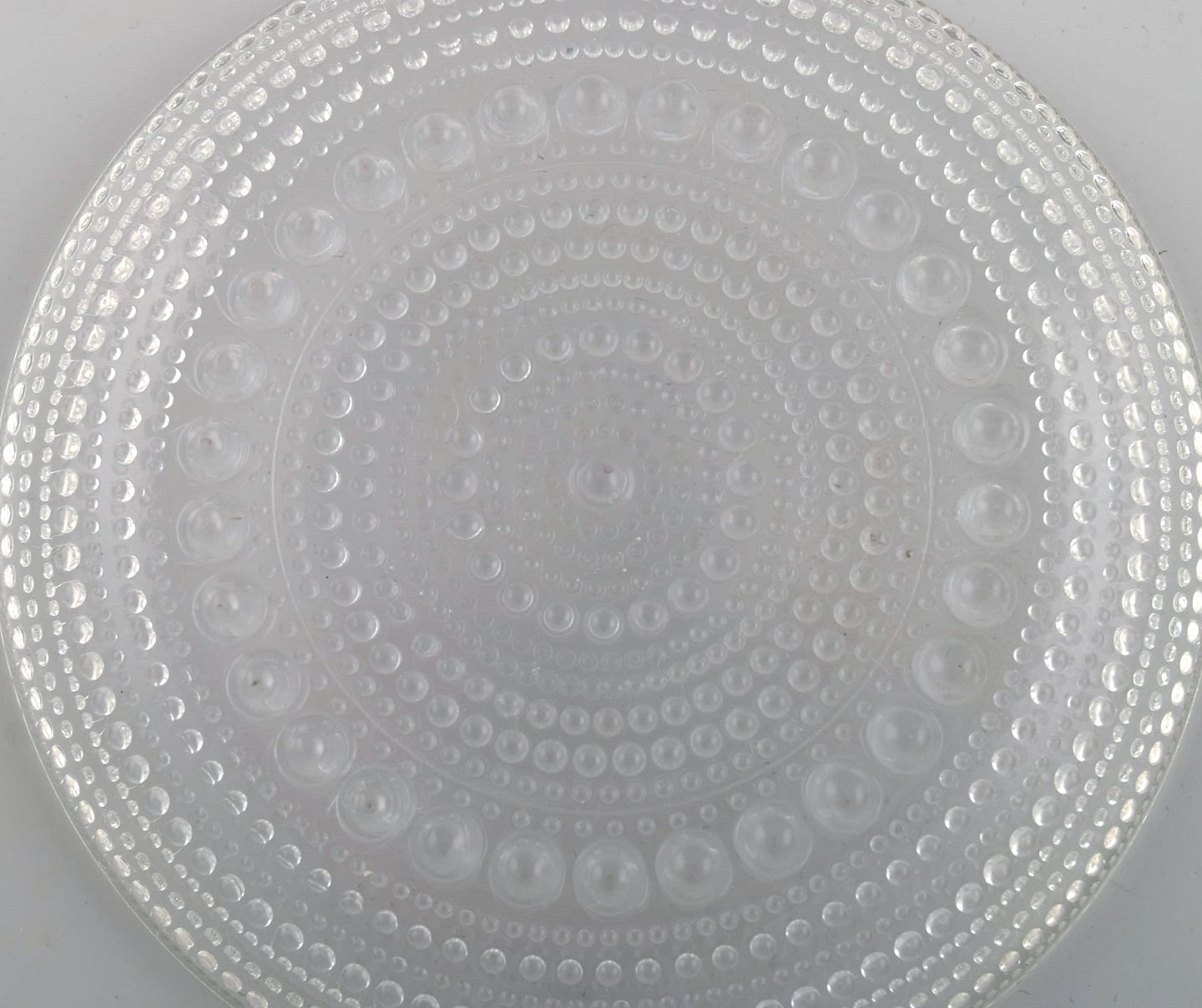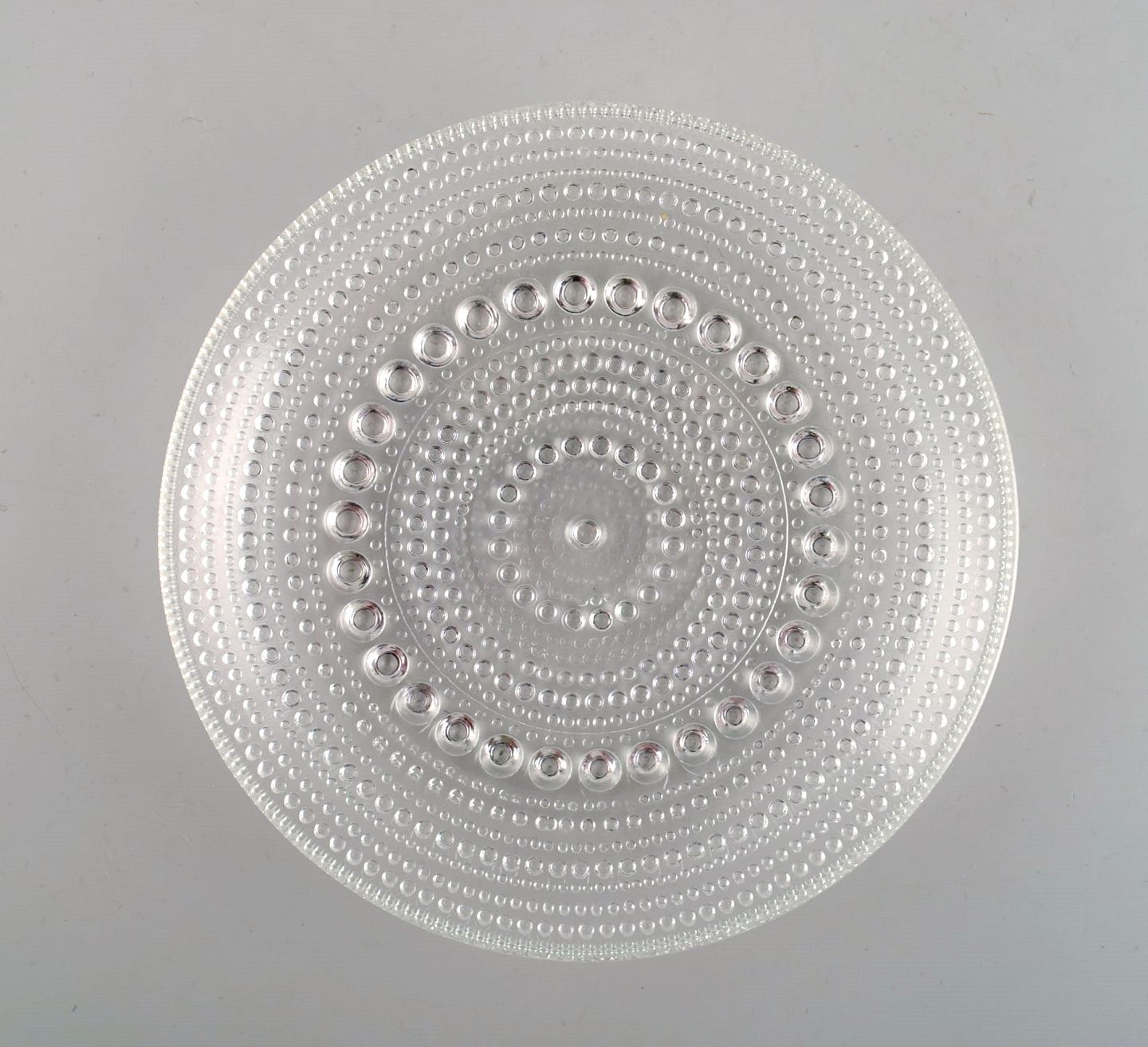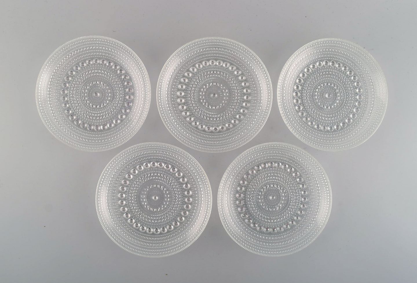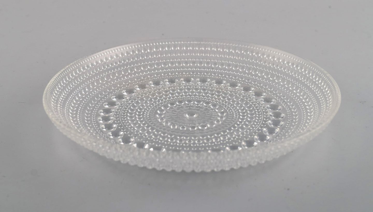 Oiva Toikka for Arabia. Five Kastehelmi plates in clear art glass. Finnish design, 1970s. Diameter: 14 cm. In excellent condition.