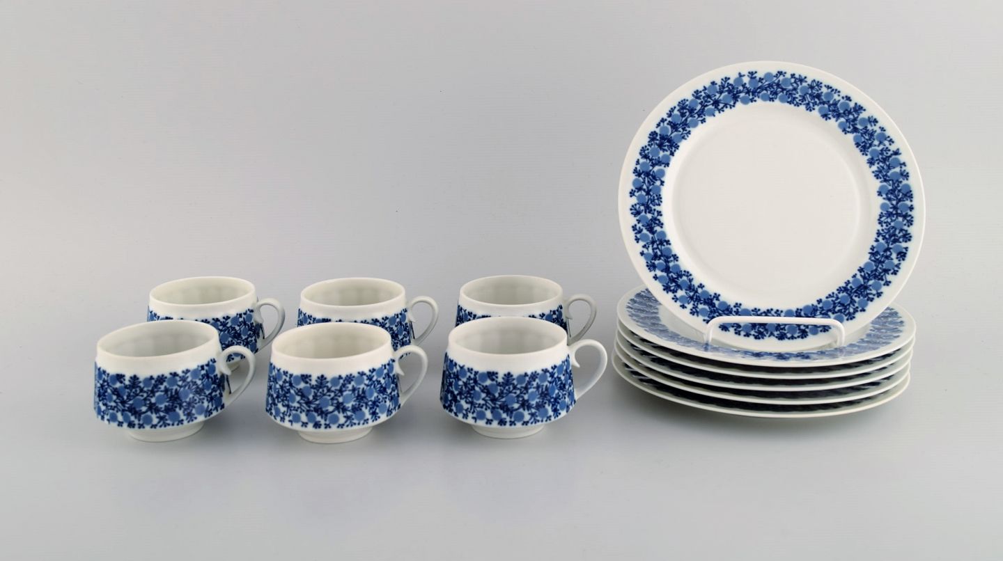 Arabia, Finland. Retro Doria kaffeservice i porcelæn med blå blomster dekoration. 1960'erne.