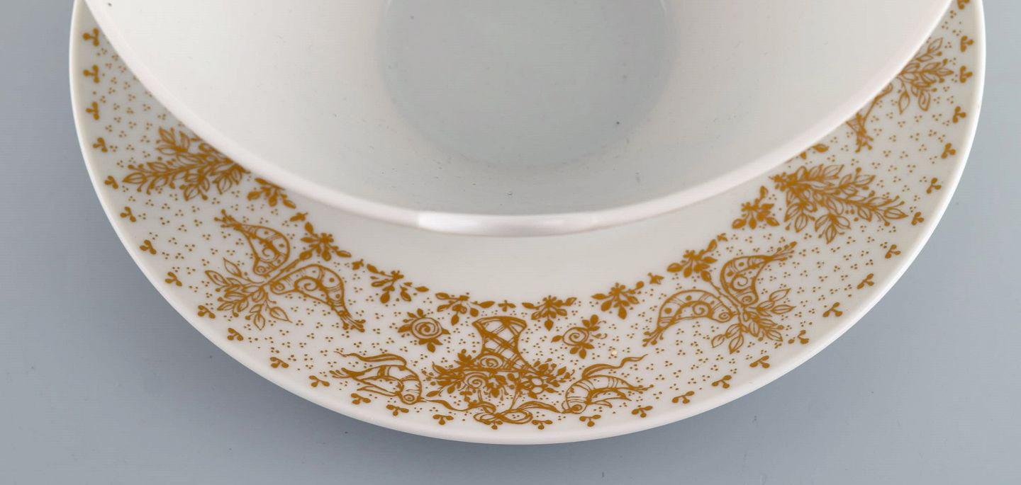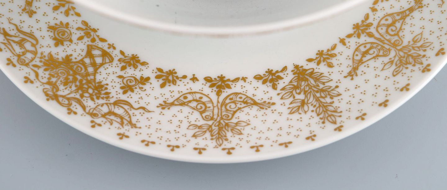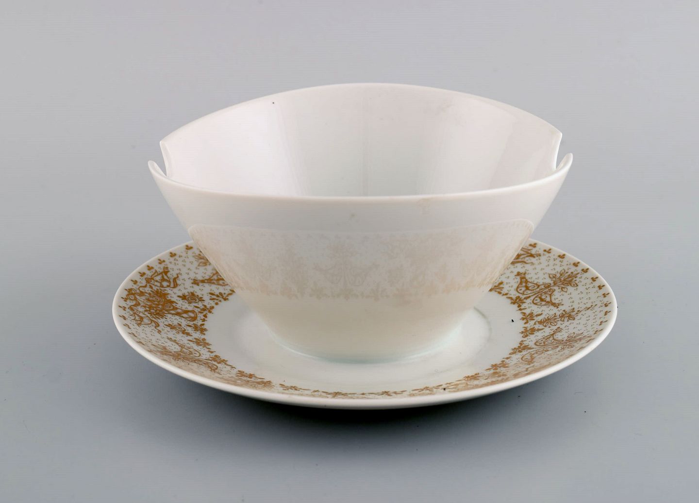 Bjørn Wiinblad for Rosenthal. Sovseskål i porcelæn med gulddekoration. 1980'erne. Måler: 18,3 x 8 cm. I flot stand. Stemplet.