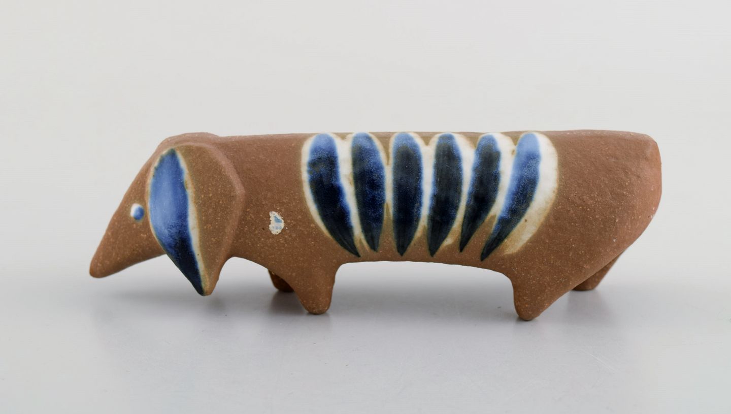 Lisa Larson for Gustavsberg. Fire hunde i glaseret keramik. 1970'erne. Største måler: 9,5 x 7 cm. I flot stand. Signeret.