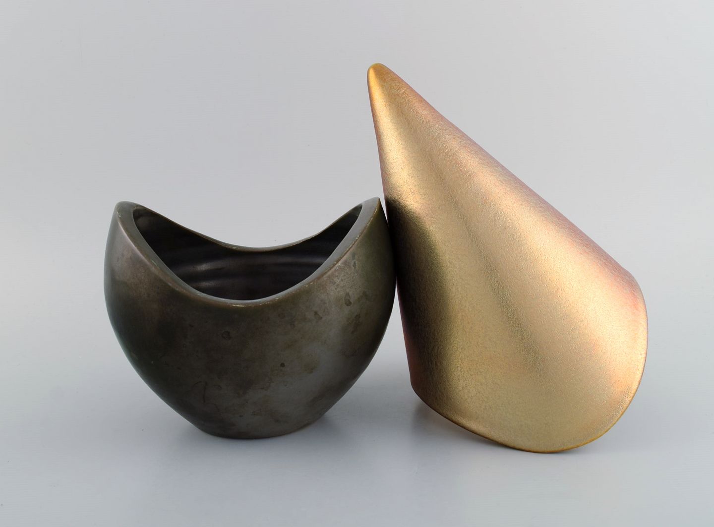 Mobach, Holland. To store modernistiske unika lågkrukker i glaseret keramik. 1980'erne. Måler: 33 x 17 cm. I flot stand. Stemplet.