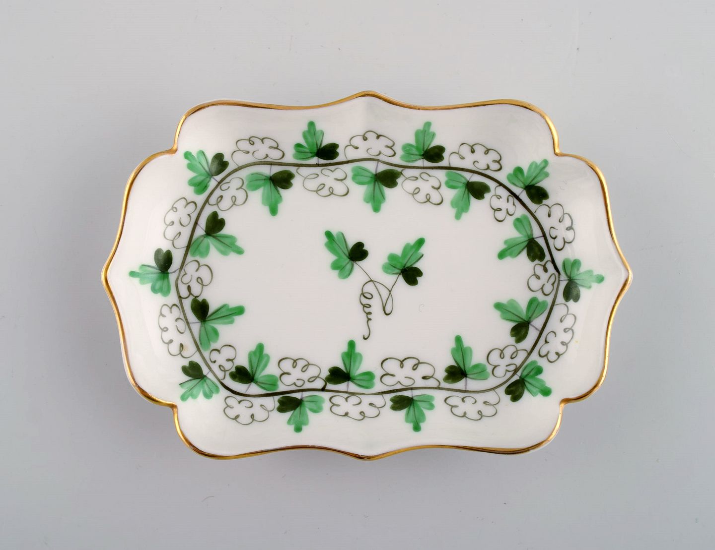 Herend Grøn Trekløver egoist kaffeservice i håndmalet porcelæn med guldkant. Midt 1900-tallet.