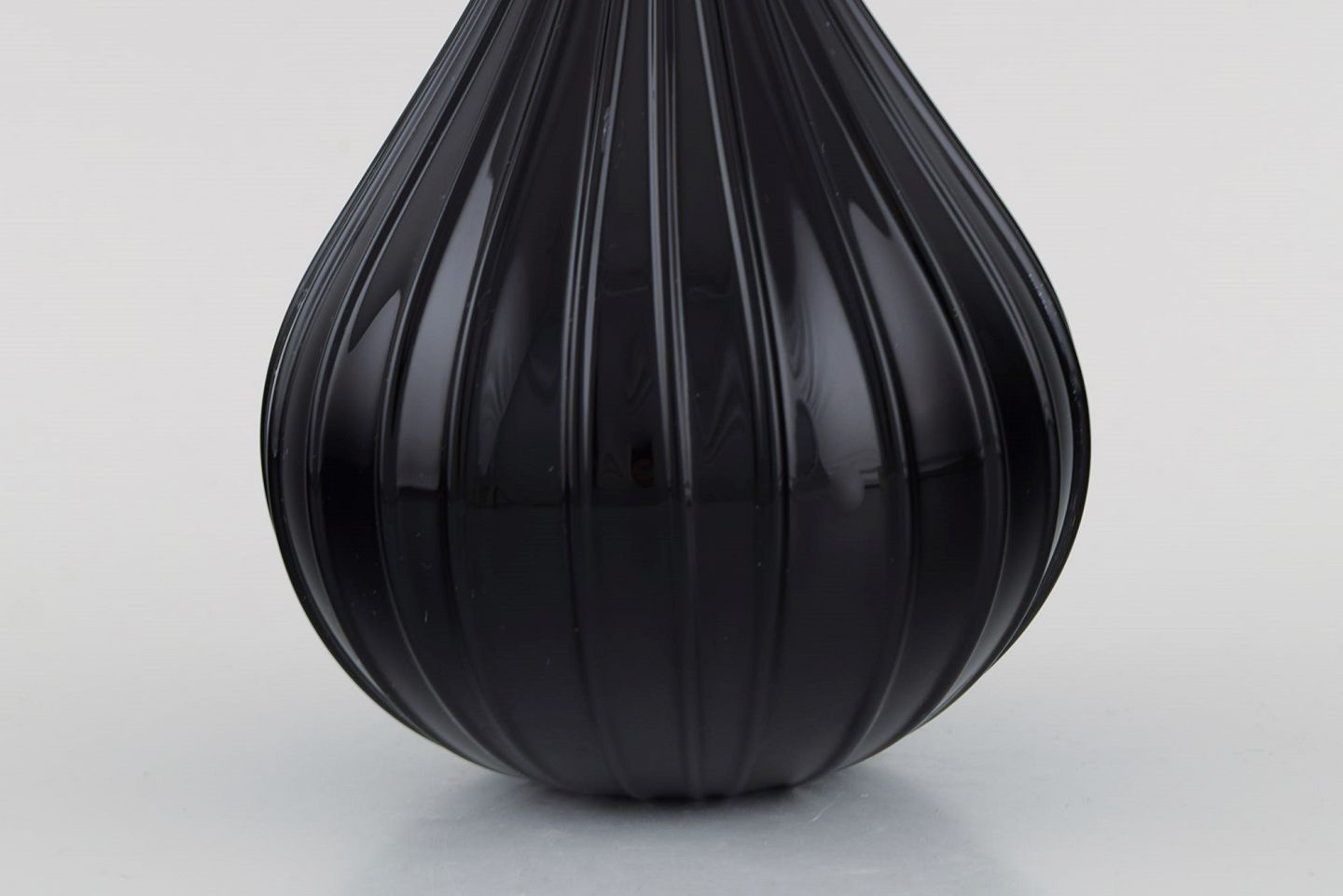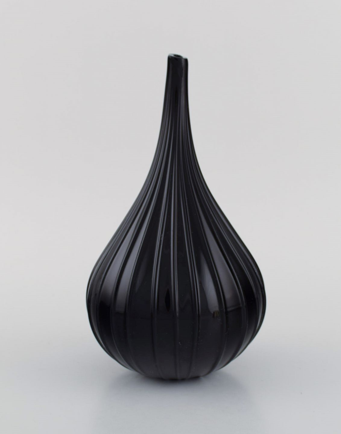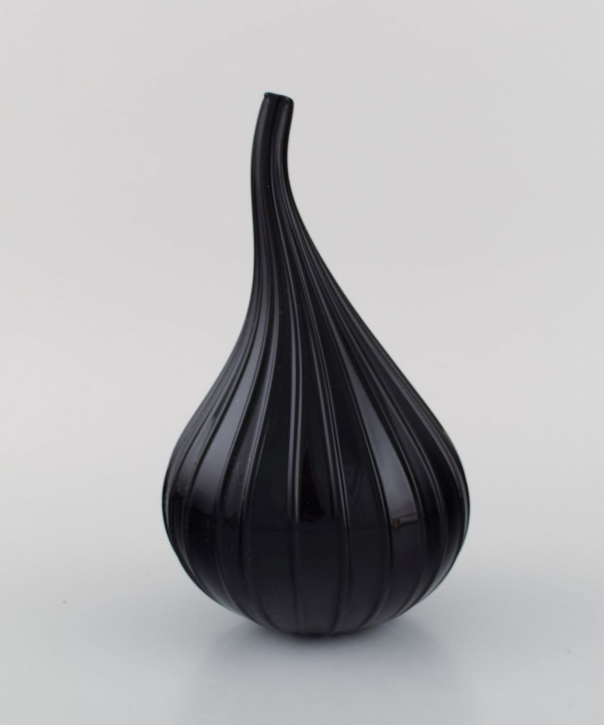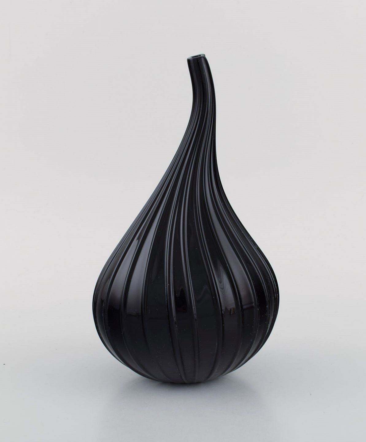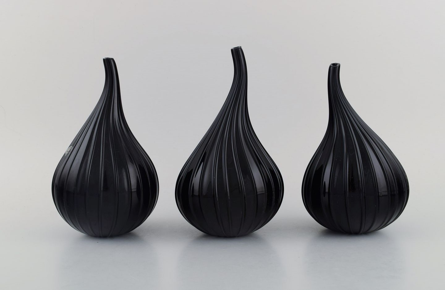 Renzo Stellon for Salviati, Murano. Tre dråbeformede vaser i sort riflet kunstglas. Dateret 2000.