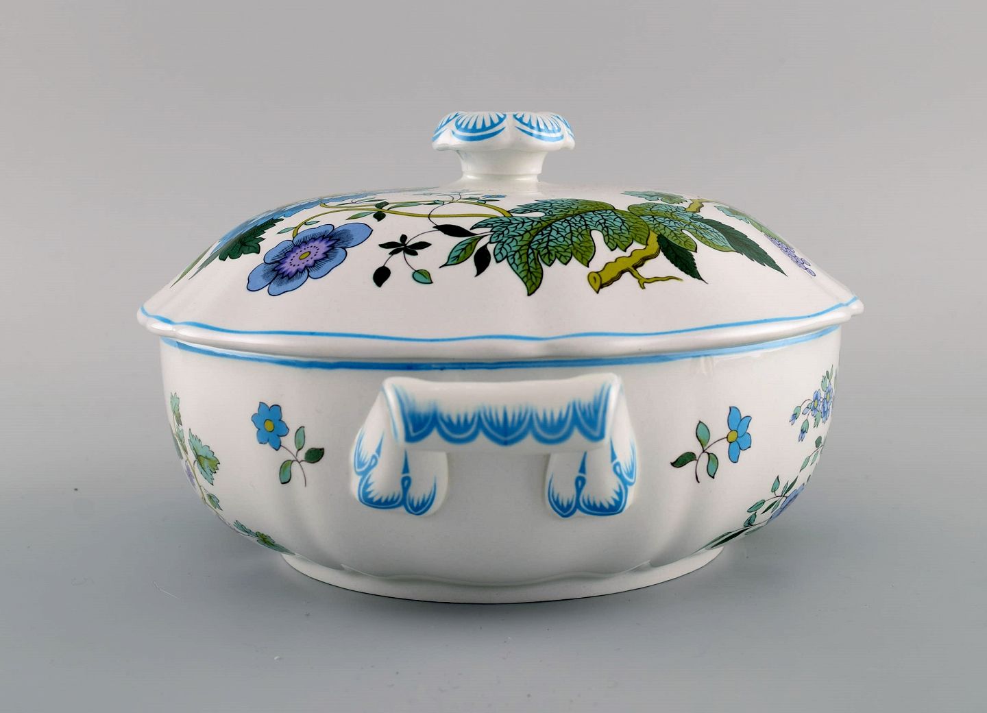 Spode, England. Mulberry suppeterrin i håndmalet porcelæn med blomster- og fuglemotiver. 1960/70'erne.