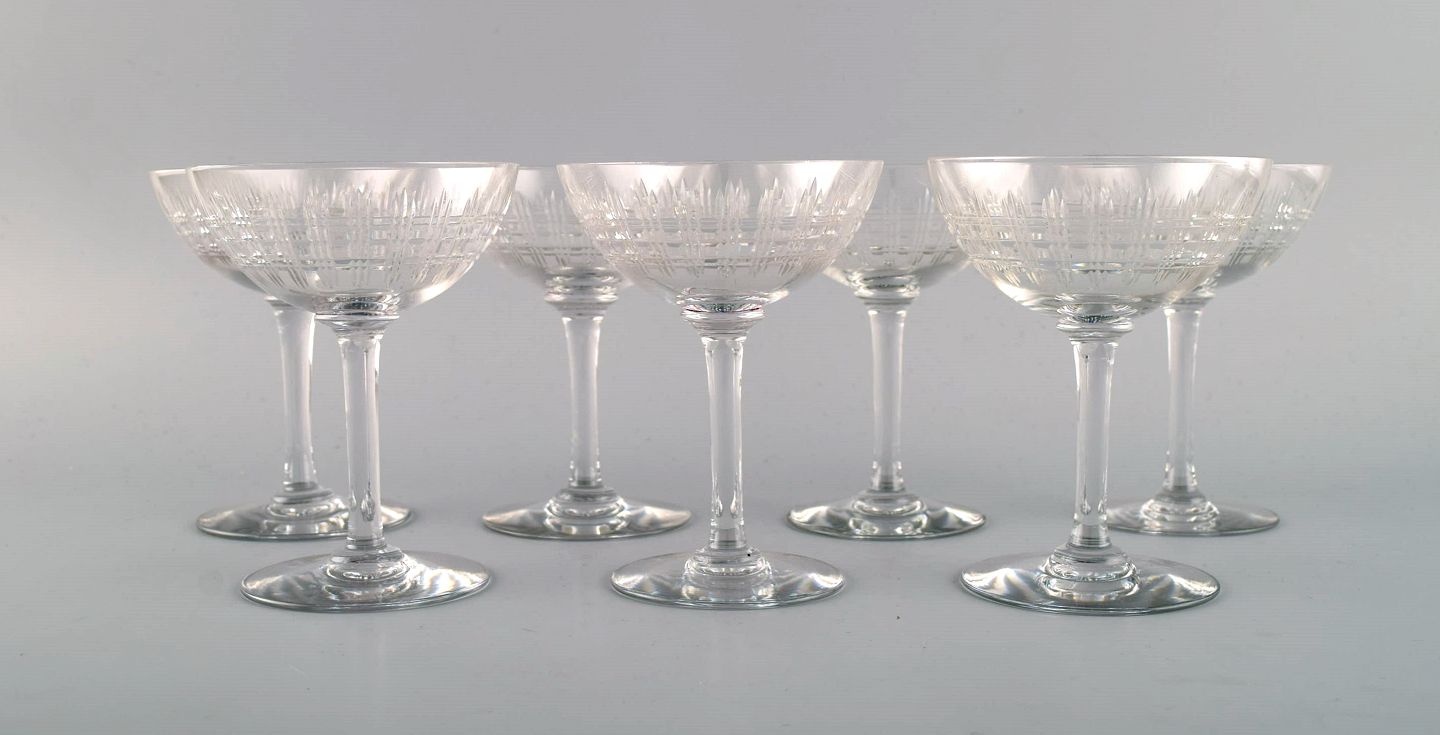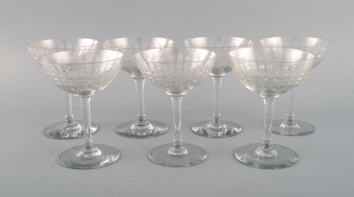 Baccarat, Frankrig. Syv art deco Cavour champagneskåle i mundblæst krystalglas. 1920/30'erne.