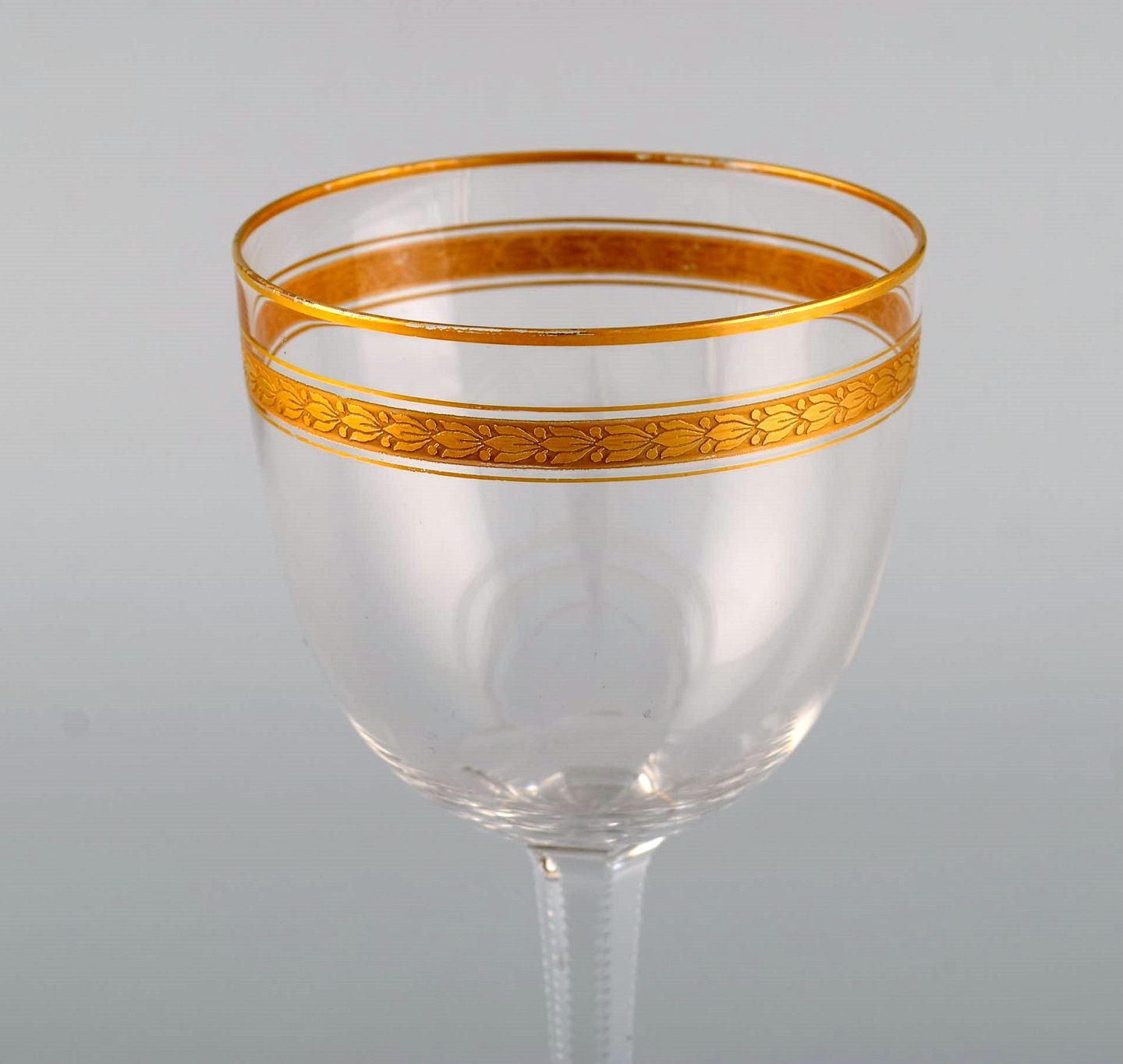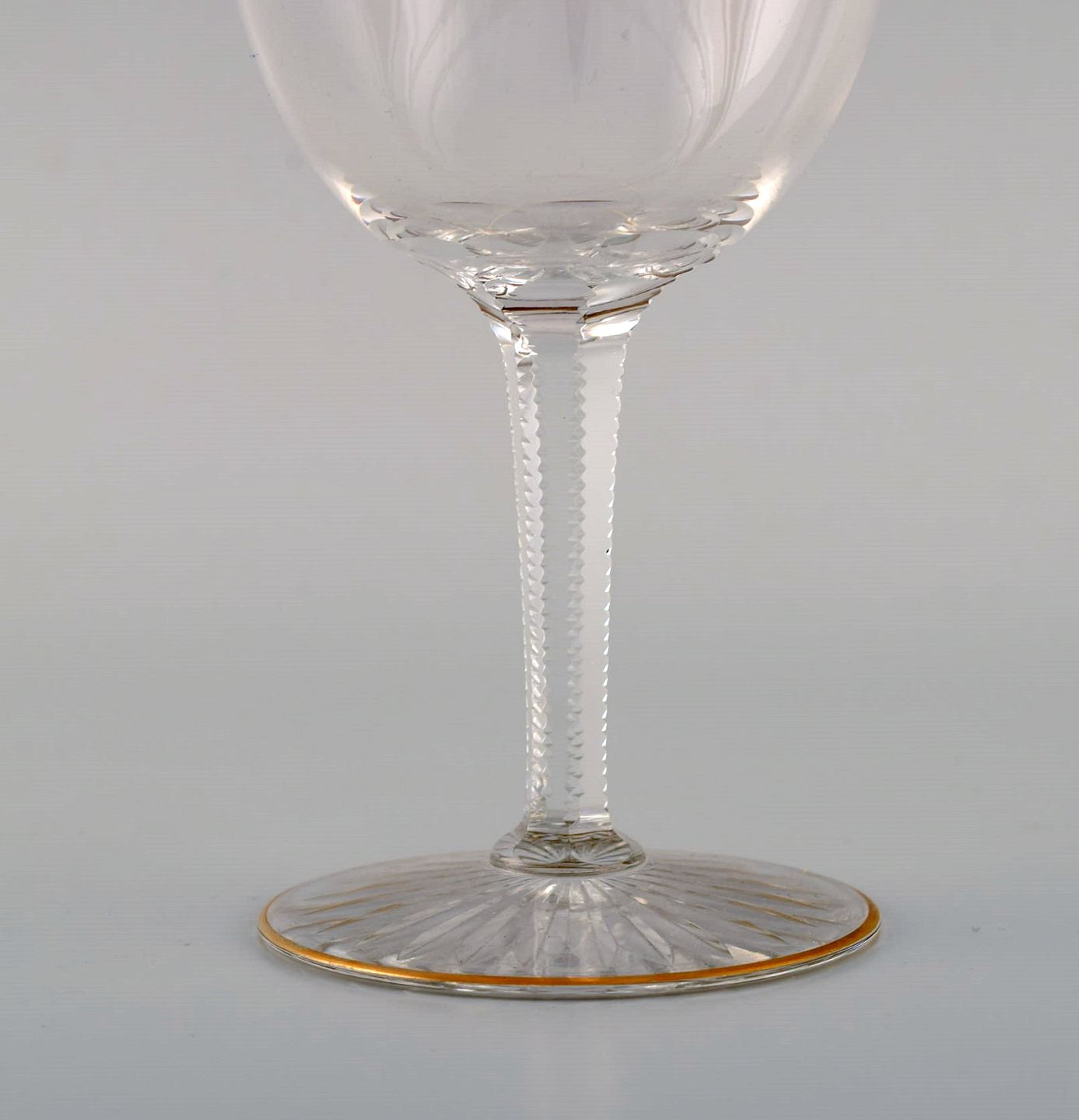 Baccarat, Frankrig. Ti art deco rødvinsglas i mundblæst krystalglas med gulddekoration i form af blade. 1930'erne. Måler: 16 x 8,5 cm. I flot stand.